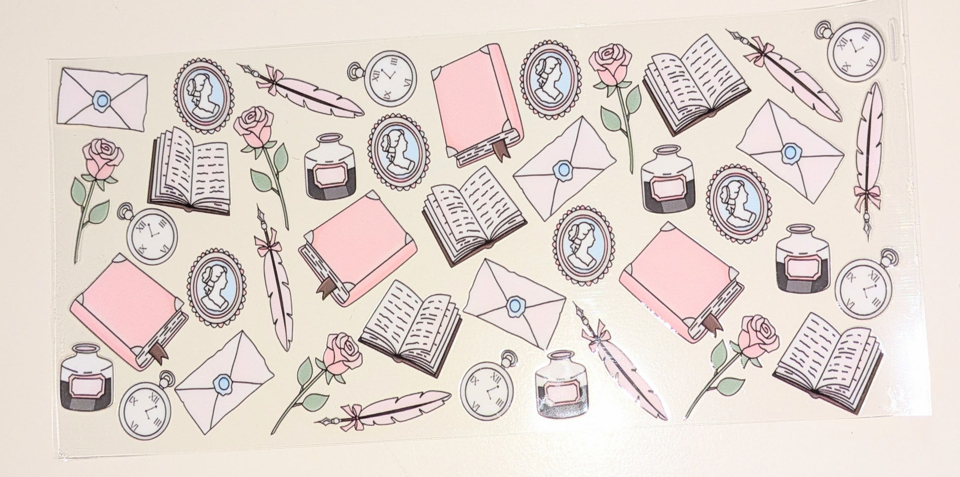 16 Oz Sticker Bücher Buch Brief Tinte Rose Feder Uhr Brosche Bild CS000040