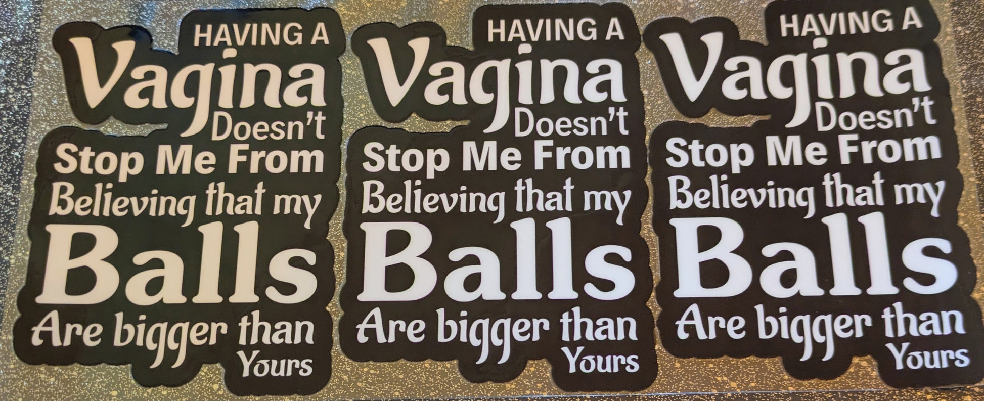 16 Oz Sticker Having a Vagina Doesn´t Stop me From Beliving my Balls are Bigger than Yours