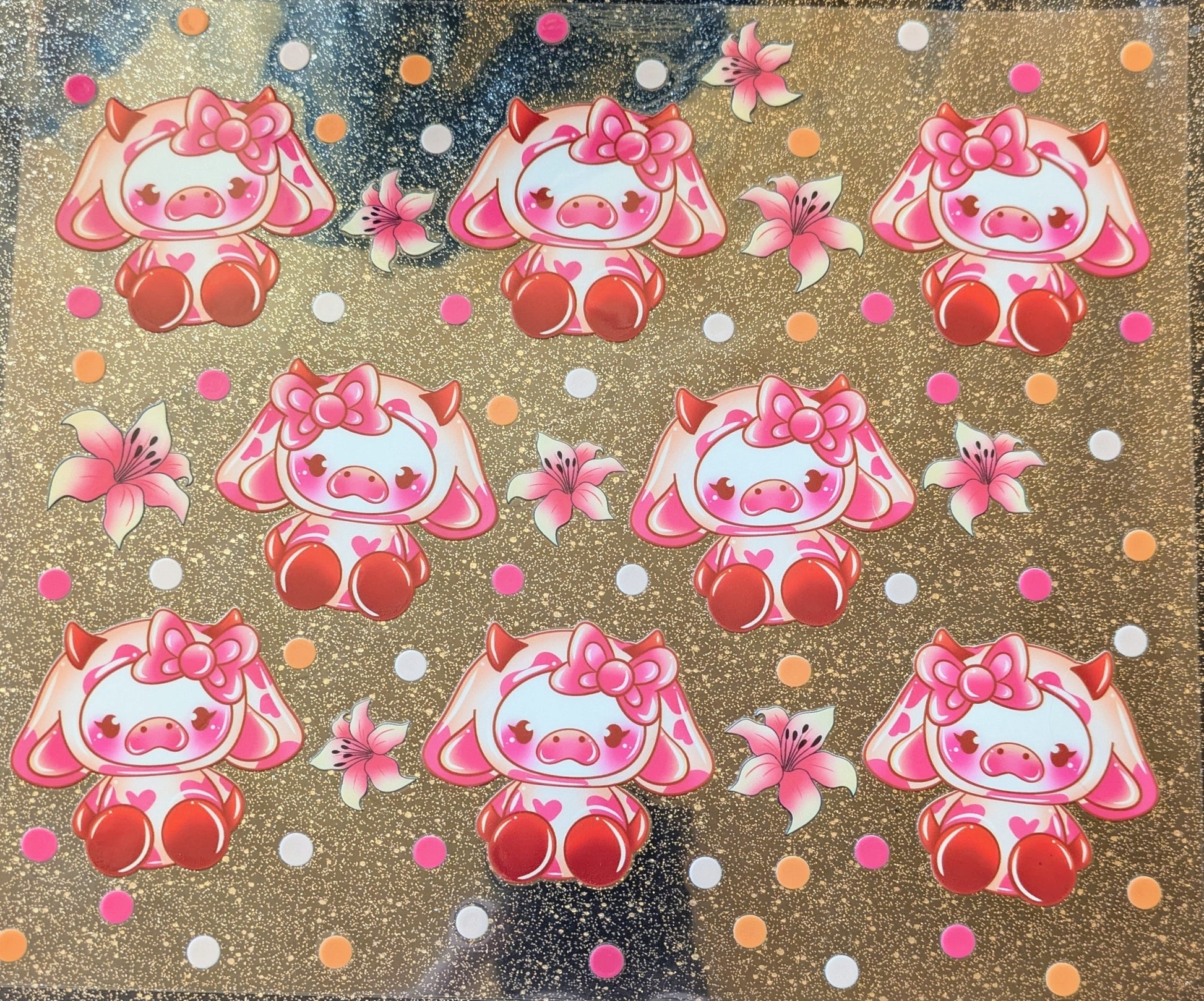 20 Oz Aufklber niedliche Kuh mit Lilien