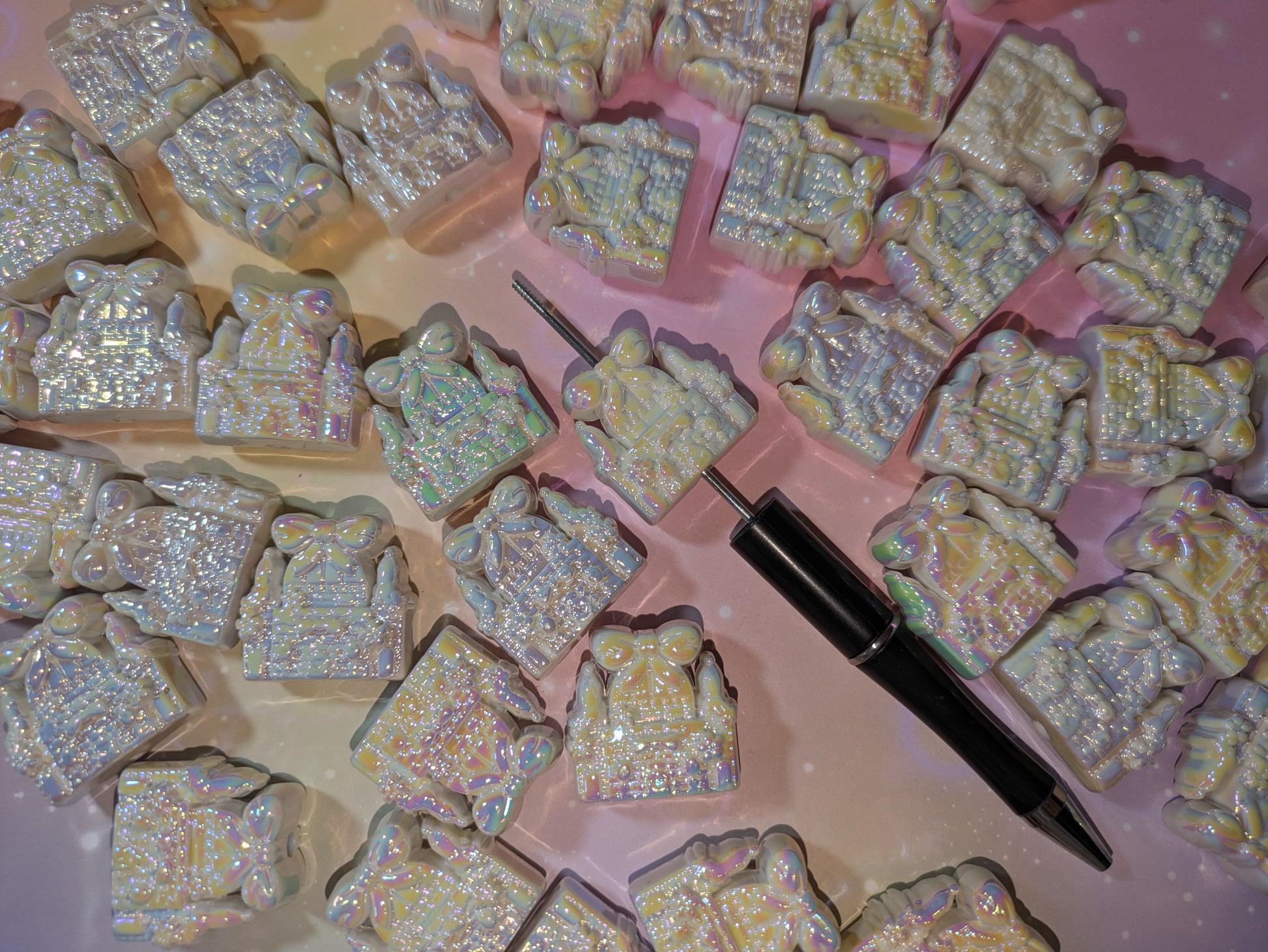 BOX01/B15 3D Schloss Perle in weiß leuchtet im Dunklen Glow in the Dark Nachtleuchtend