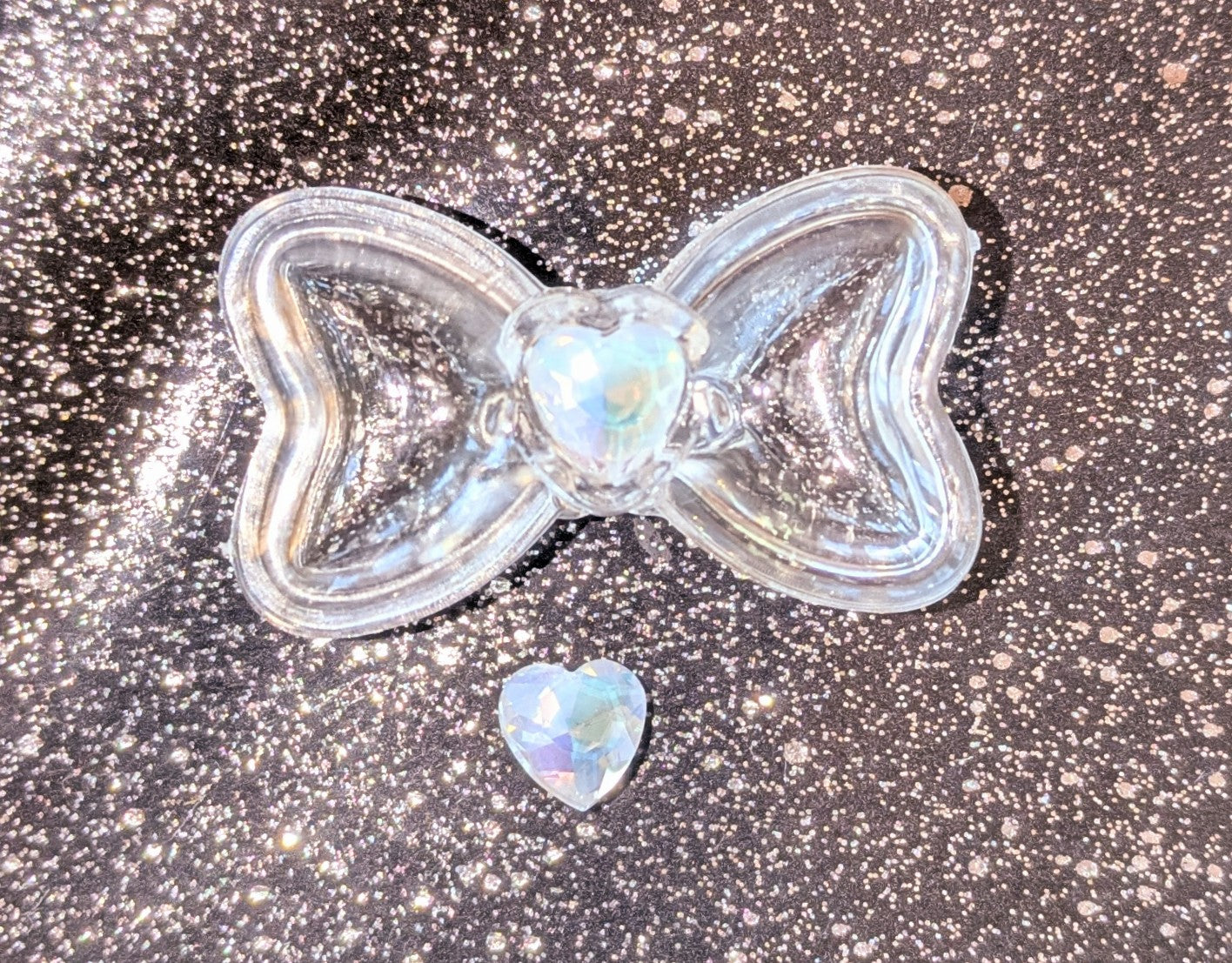 Befüllbere Transparente Plastik Schleife als Perle zu Verwenden mit 2 Glasherzen