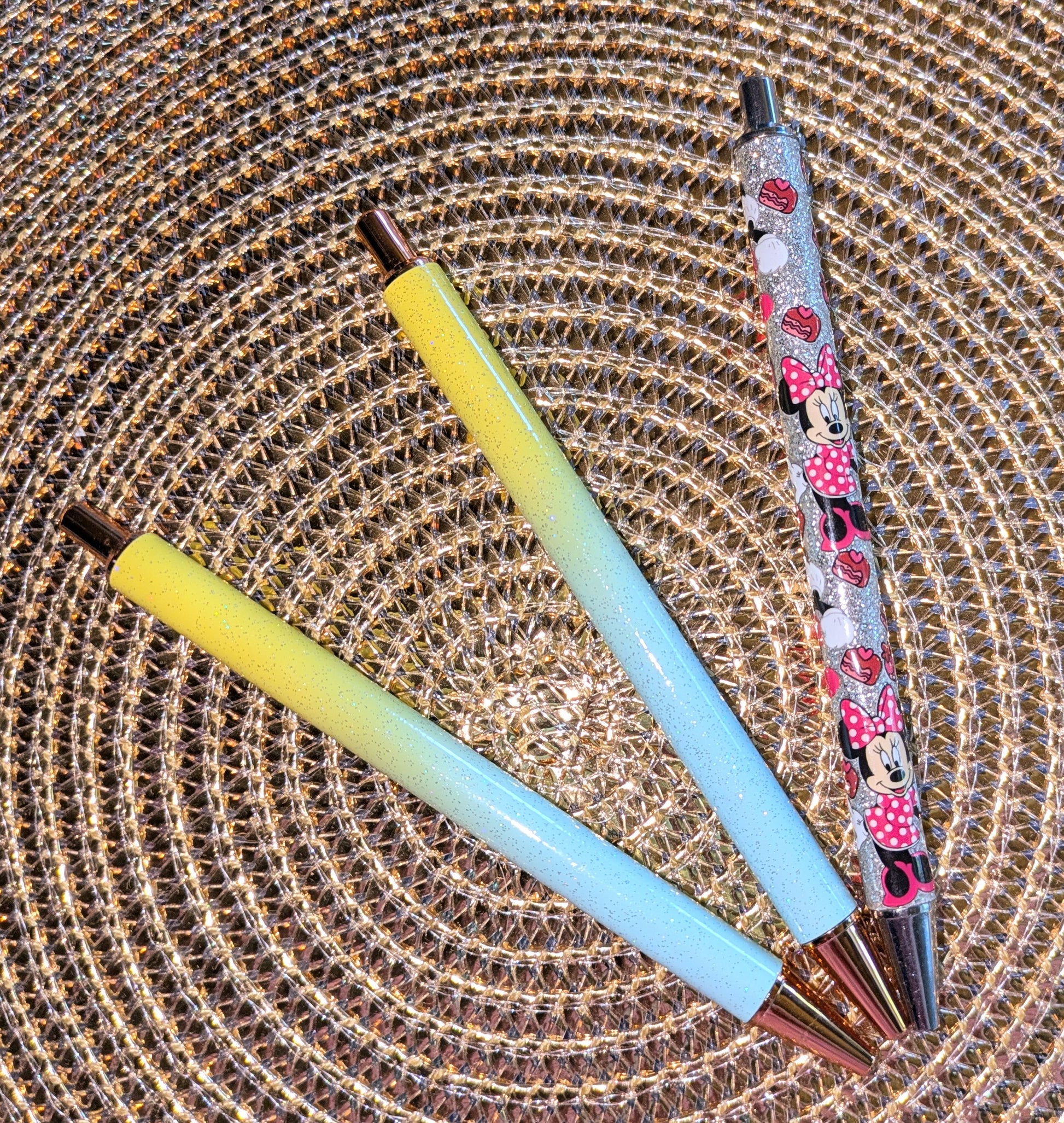 Beklebbarer Glitzerkugelschreiber Glitzer Kugelschreiber gelb hellblau ombre