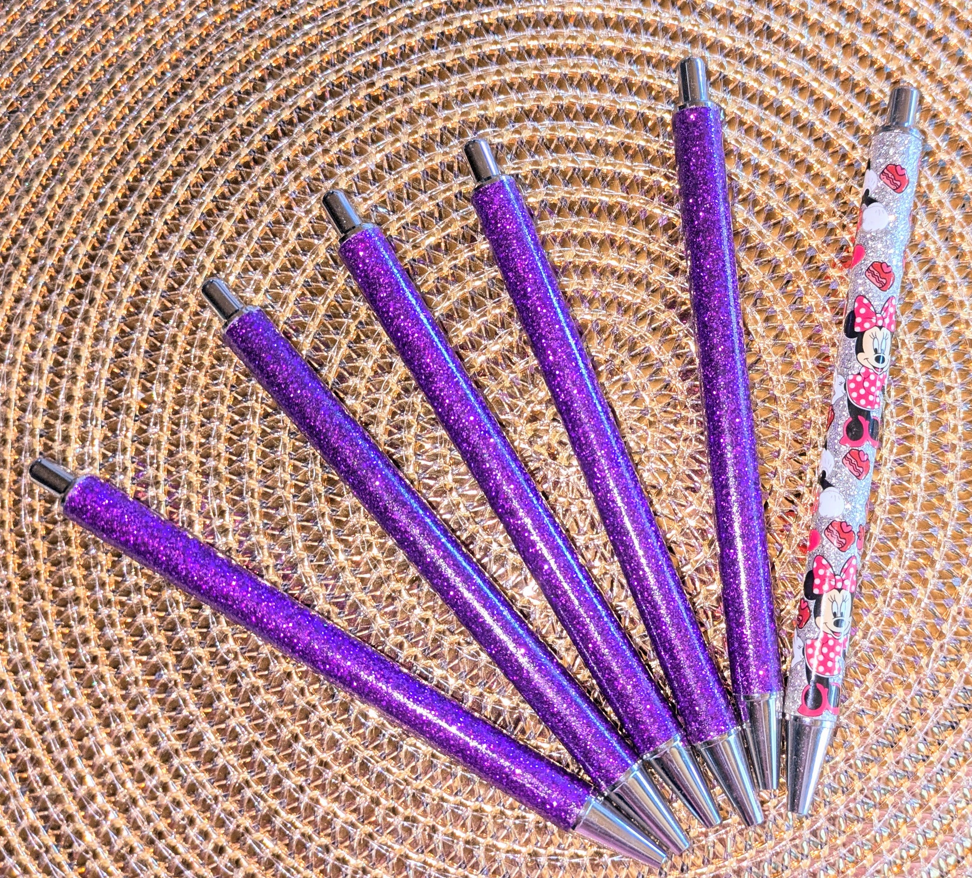 Beklebbarer Glitzerkugelschreiber Glitzer Kugelschreiber lila Glitzer