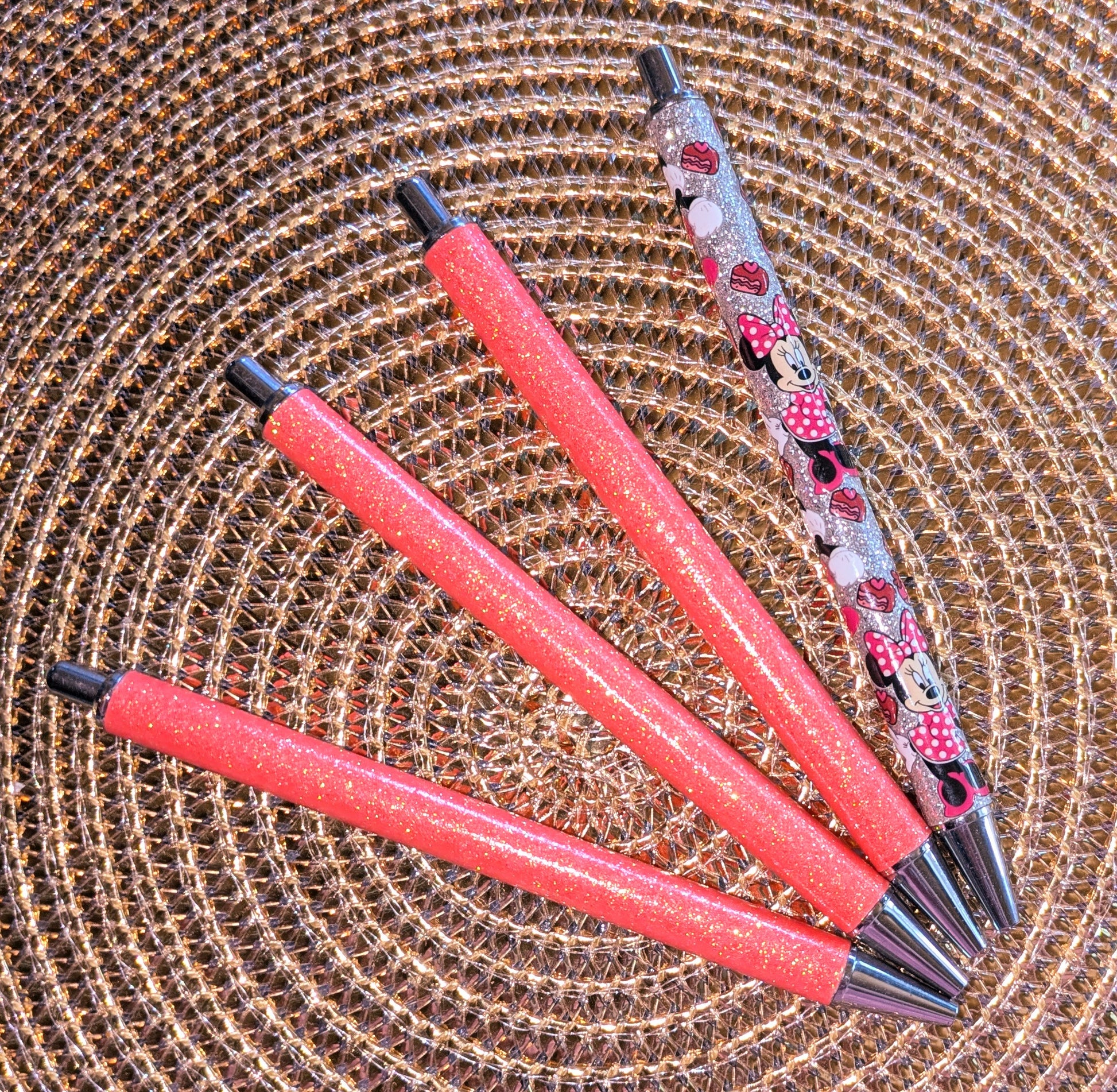 Beklebbarer Glitzerkugelschreiber Glitzer Kugelschreiber Orange Glitzer