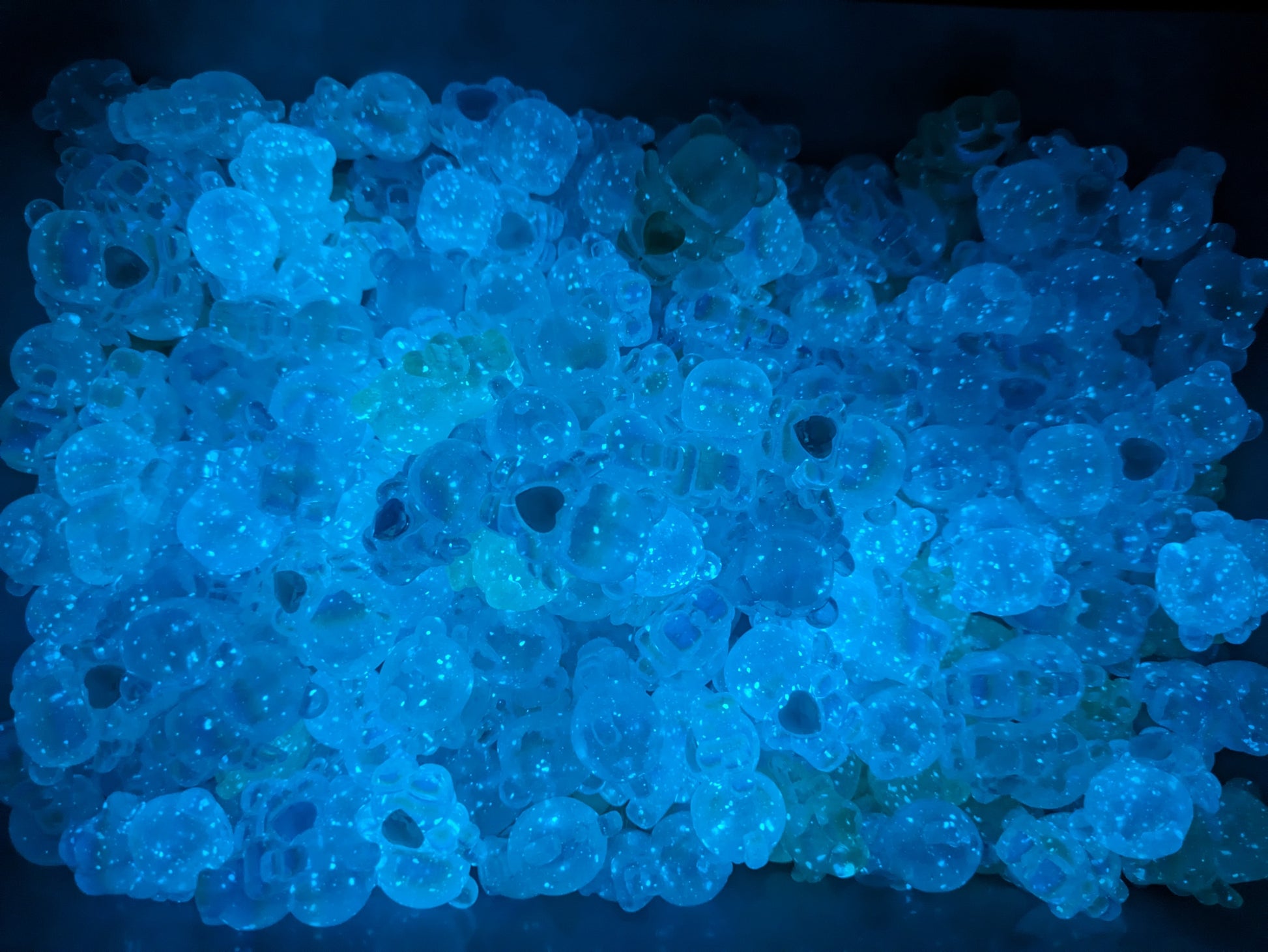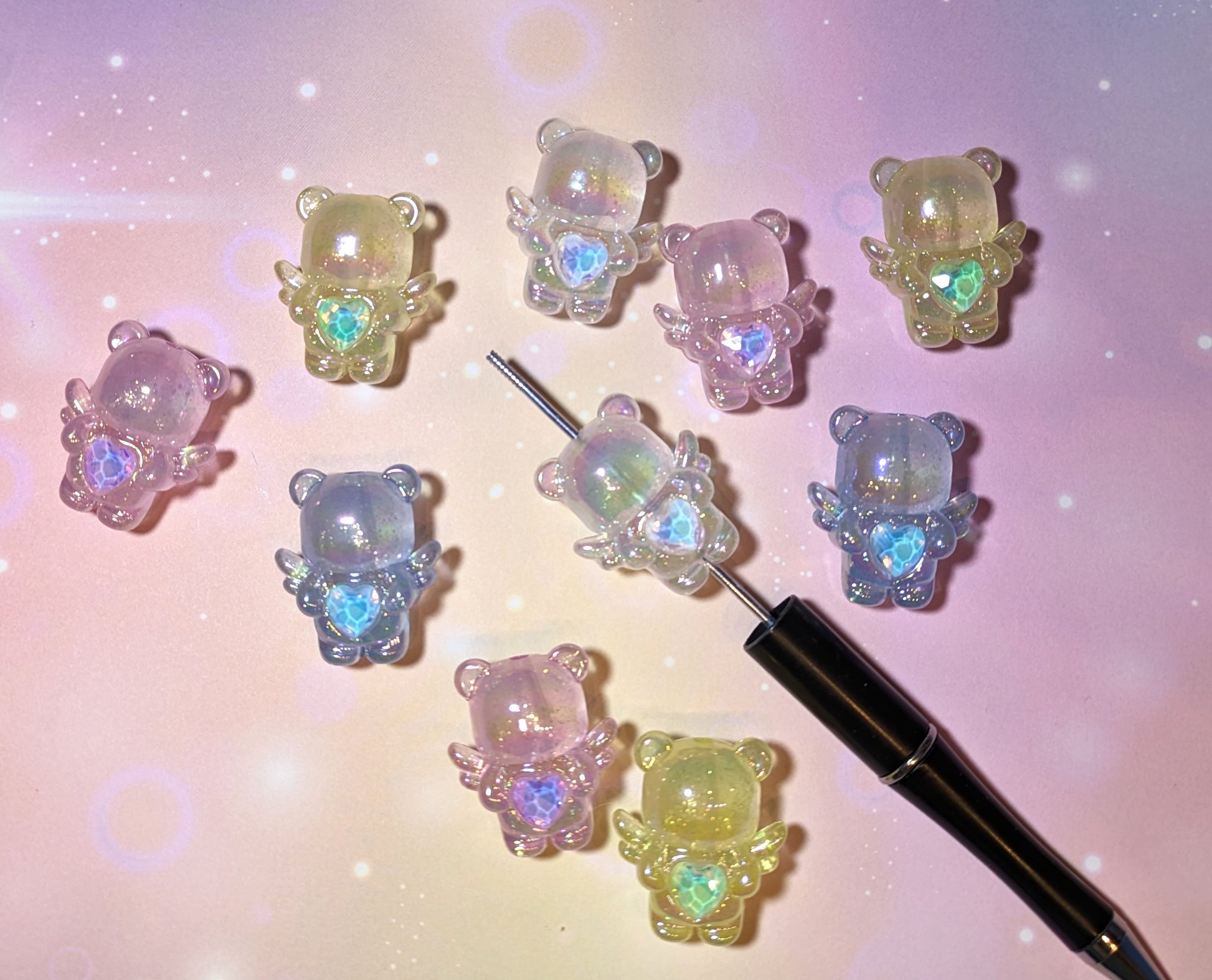 GK07 Bezaubernde Bären Transparent mit goldglitzer Strassherz Flügeln Leuchten im Dunkeln