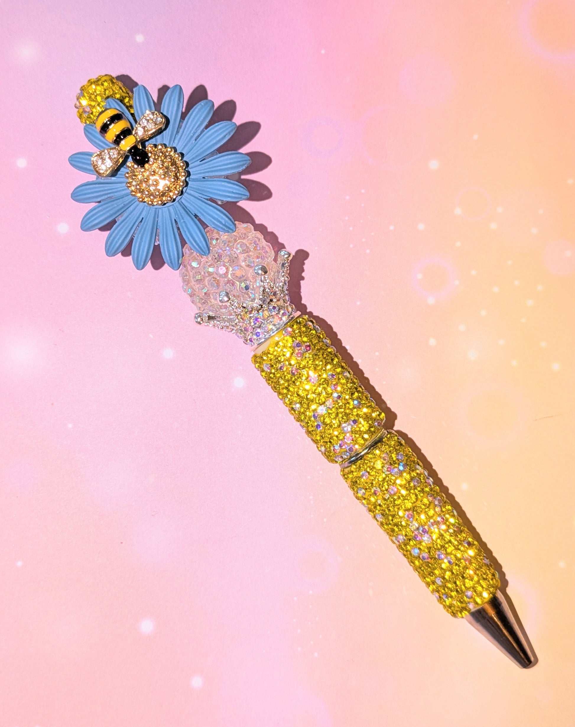 Blümchen und Bienchen Kugelschreiber gelb blau Strass viel Glitzer #10