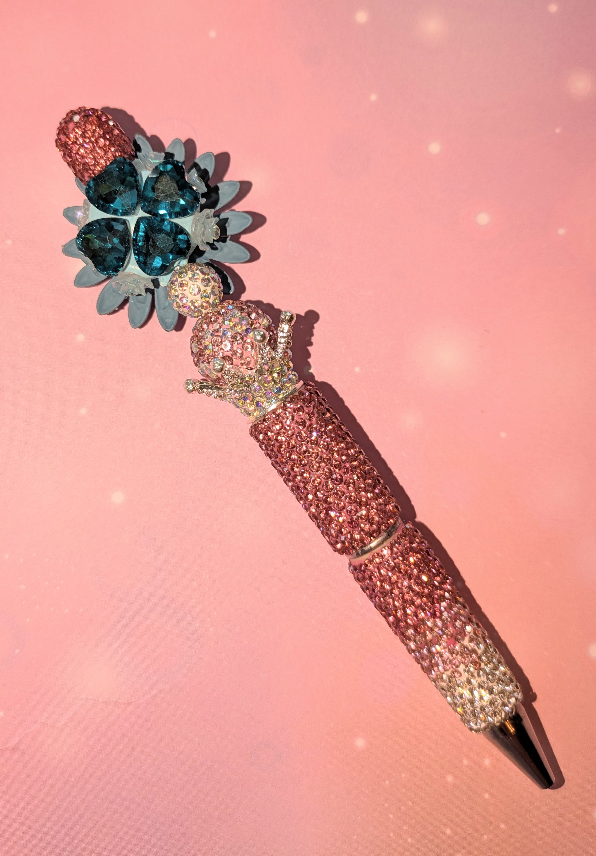 Blümchen und Bienchen Kugelschreiber Rosa Blau Strass viel Glitzer #1