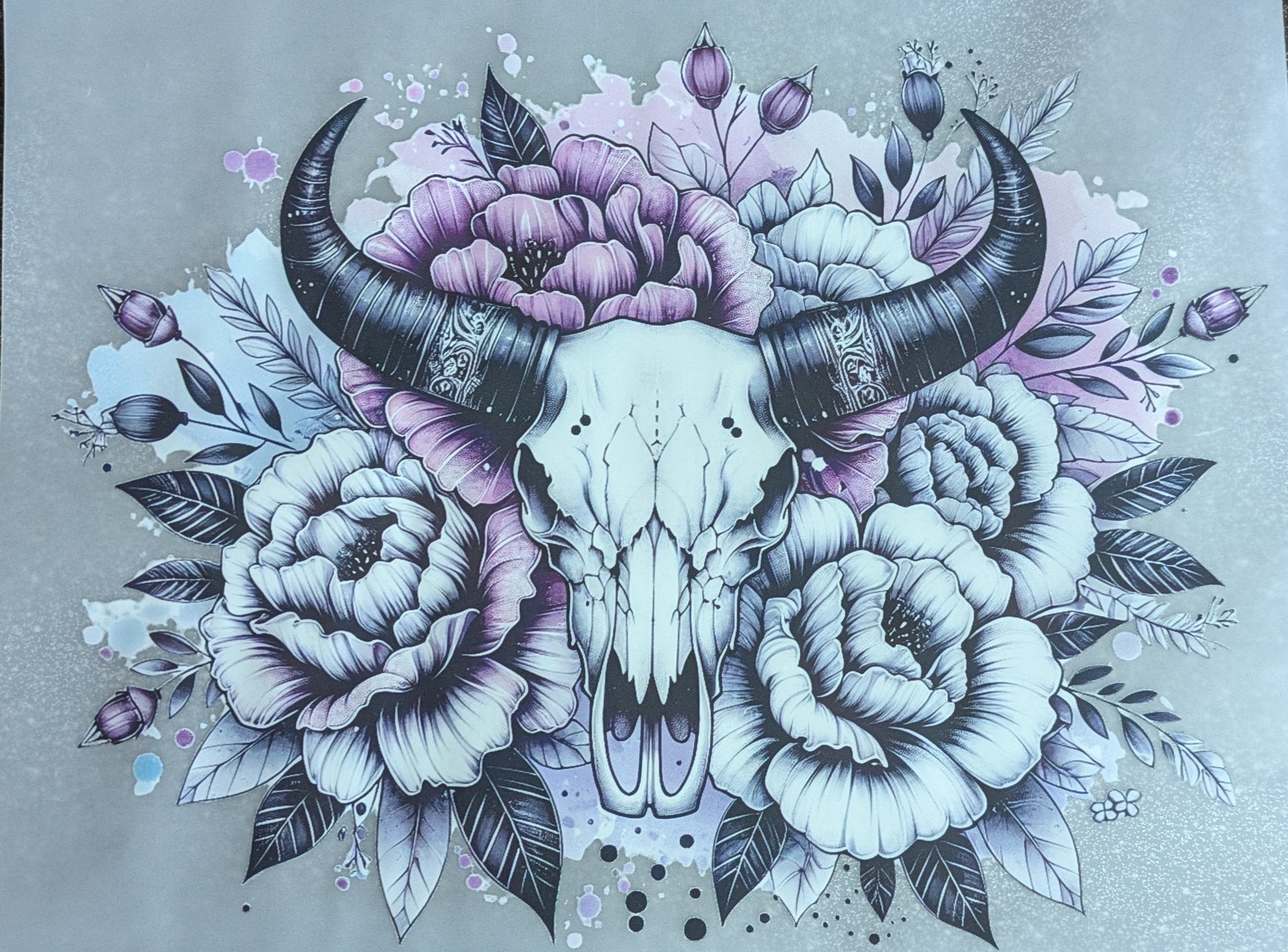 Bügelbild Gr. L " Kugschädel mit Blumen " GBB000007