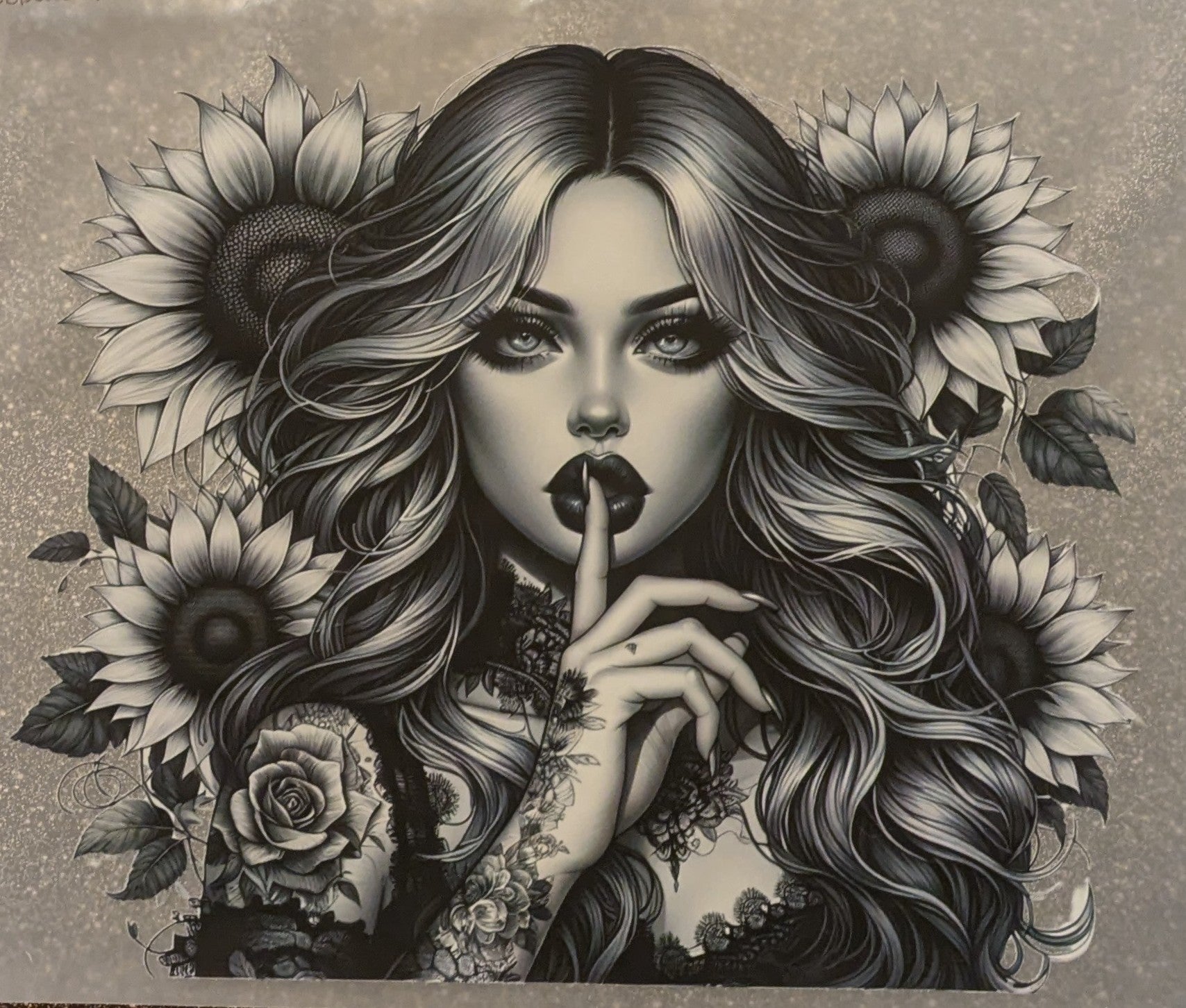 Bügelbild Gr.L " Tatoogirl grau Pretty Psst " GBB000044
