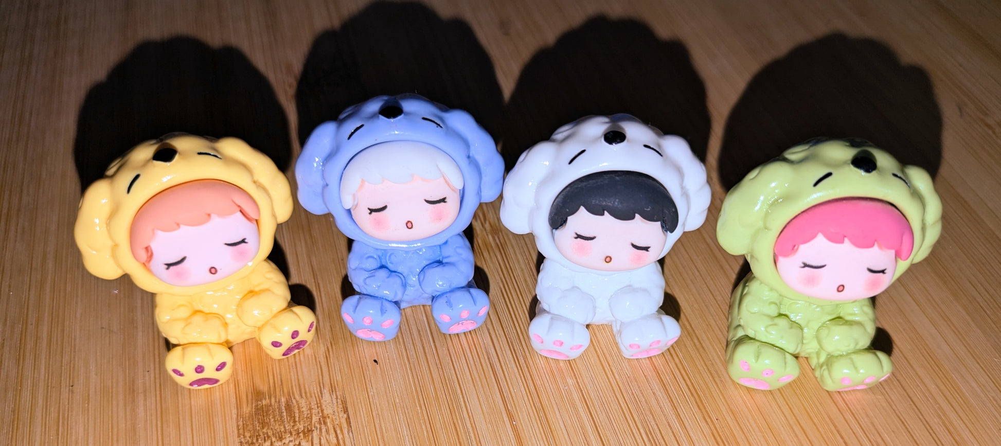 Figuren Kinder im Hundekostüm in verschiedenen Farben