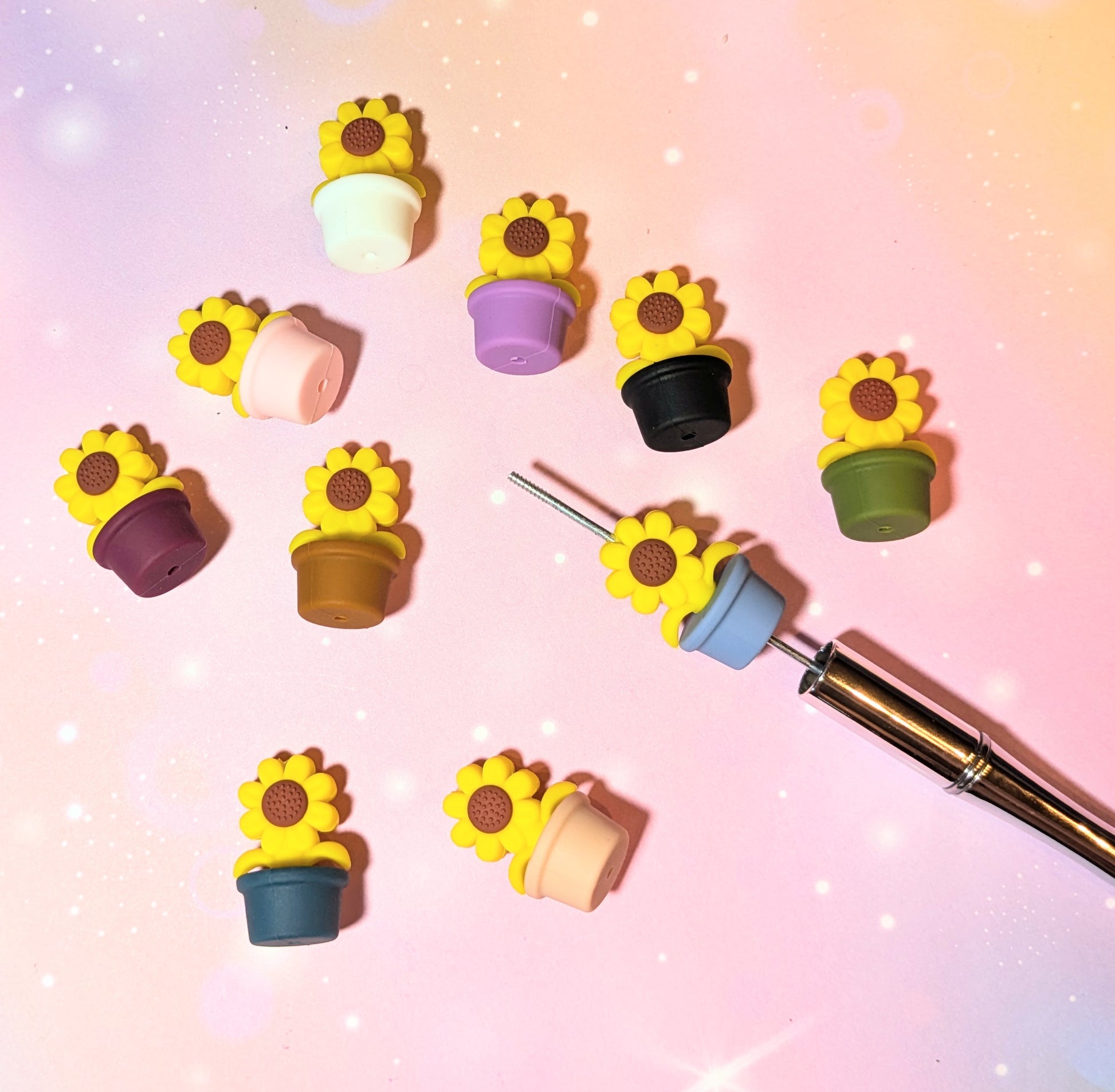 Focal Silikonperle 3D Sonnenblume im Blumentopf in verschiedenen Farben