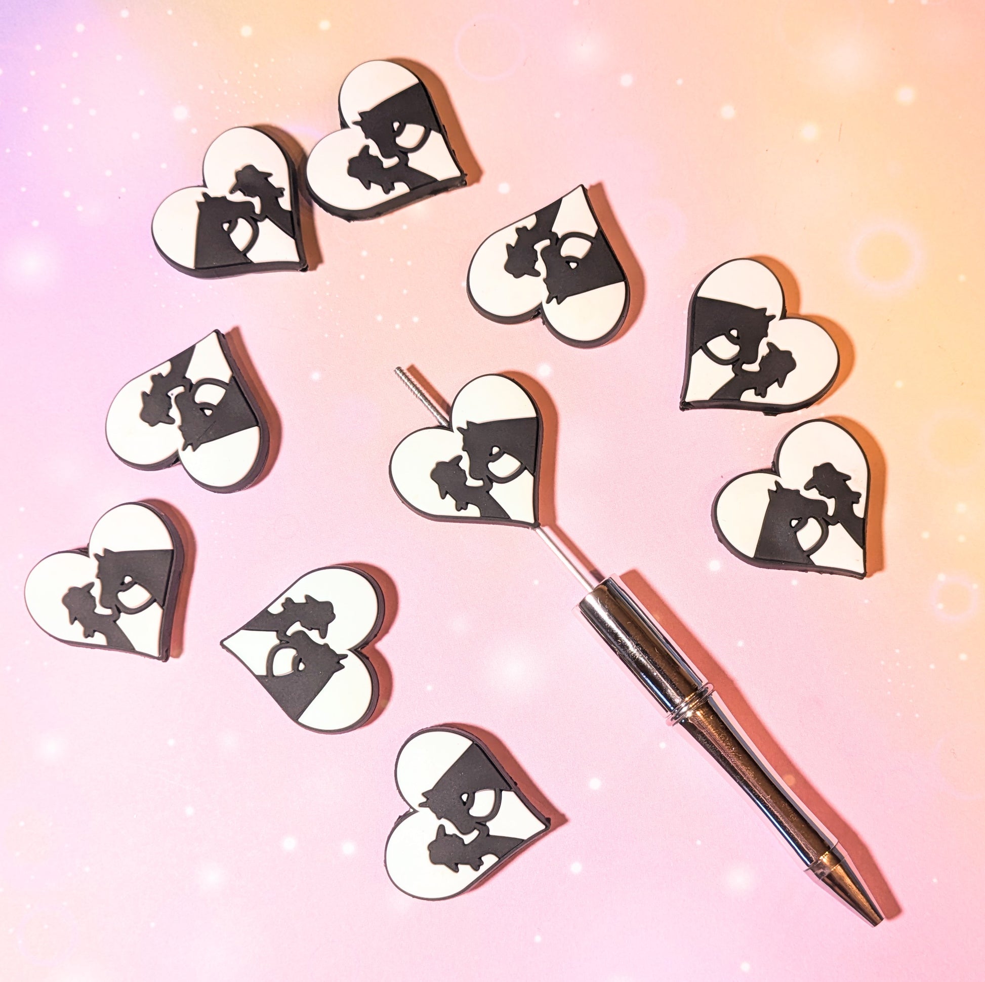 Focal Silikonperle Herz Pferd und Reiter Silouette schwarz weiß