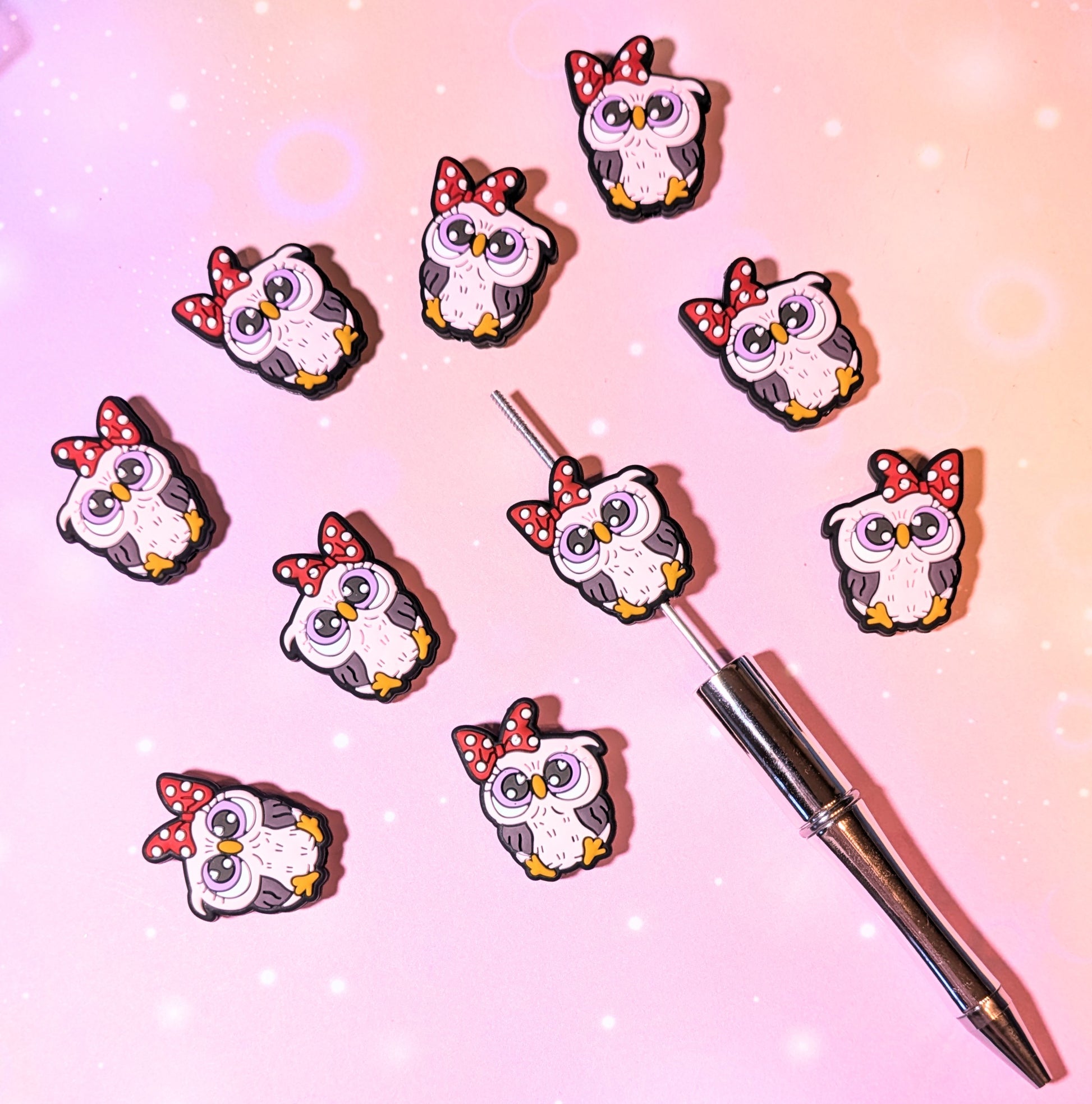 Focal Silikonperle lila Eule mit Schleife Pünktchen Polkadots große Augen