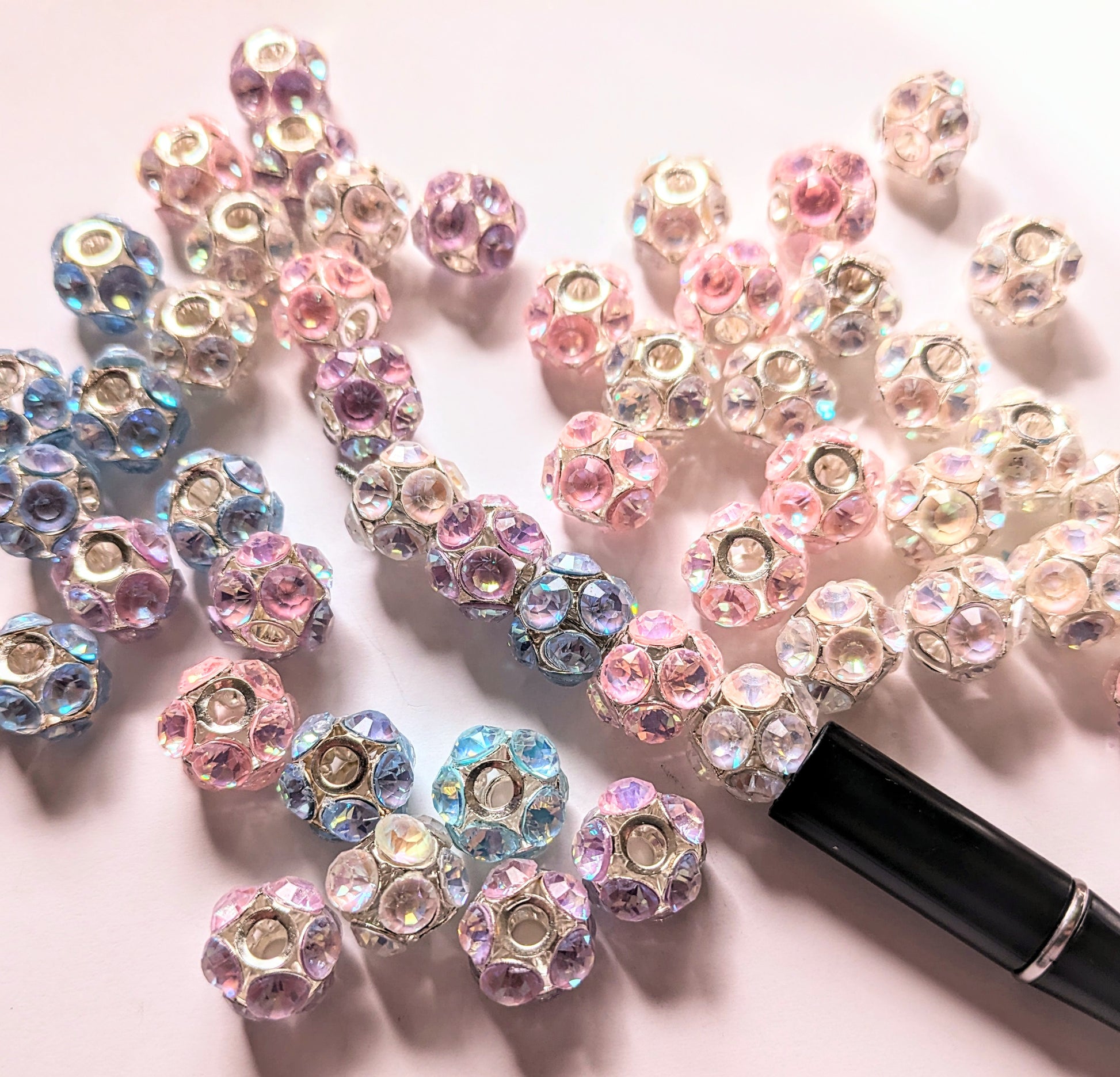Funkelnde Metallperlen mit großen Strasssteinen 14 mm in verschiedenen Farben (101)