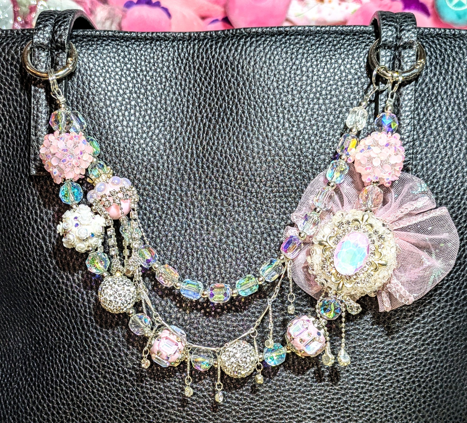 Funkelnder aufwendiger Taschenbaumler #2 rosa silber klar Glasperlen