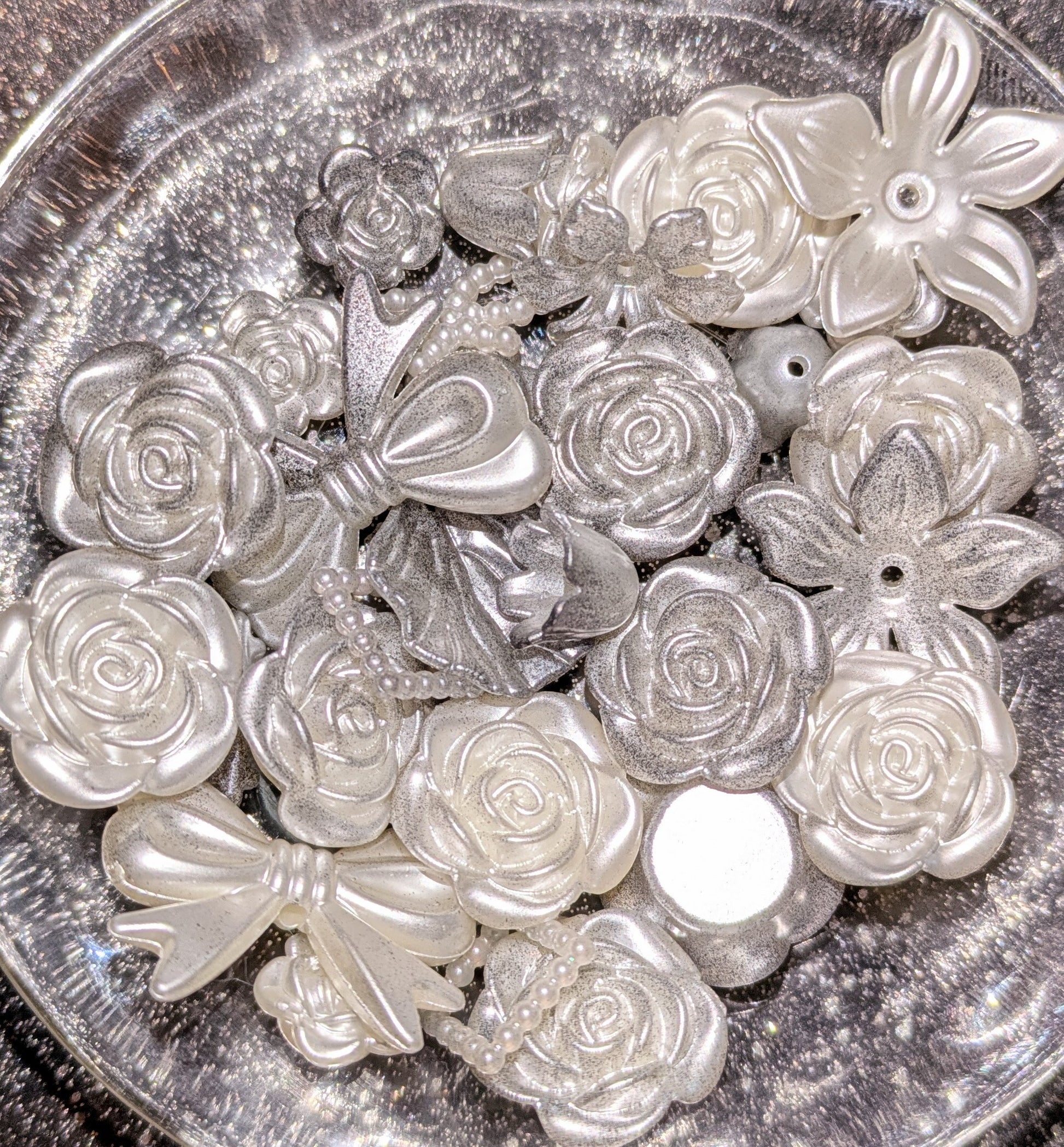 Silberrauer Blüten-Perlen bzw. Anhänger Mix