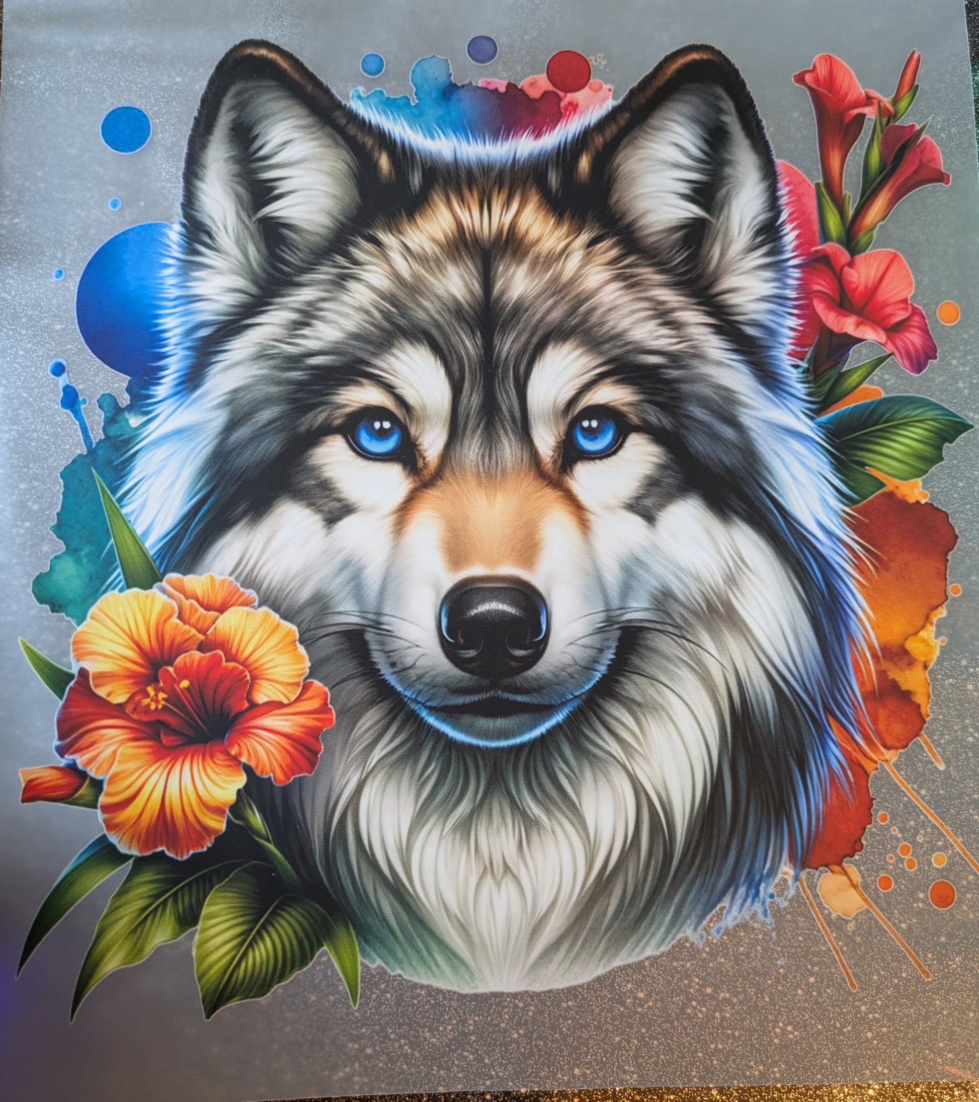 Großes Bügelbild Gr. L Wolf Hibiskus GBB000085