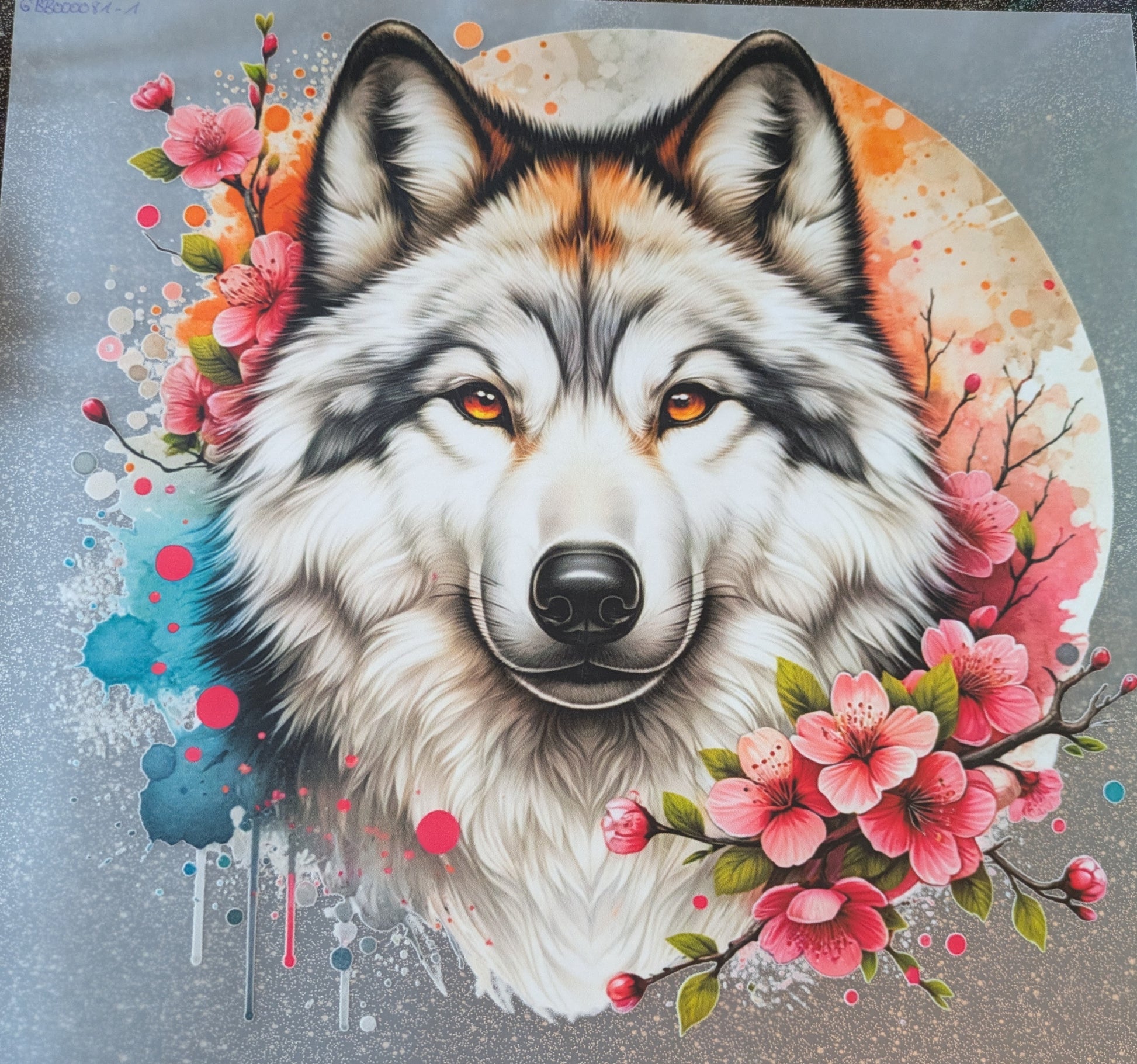 Großes Bügelbild Gr. L Wolf Kirschblüte GBB000081