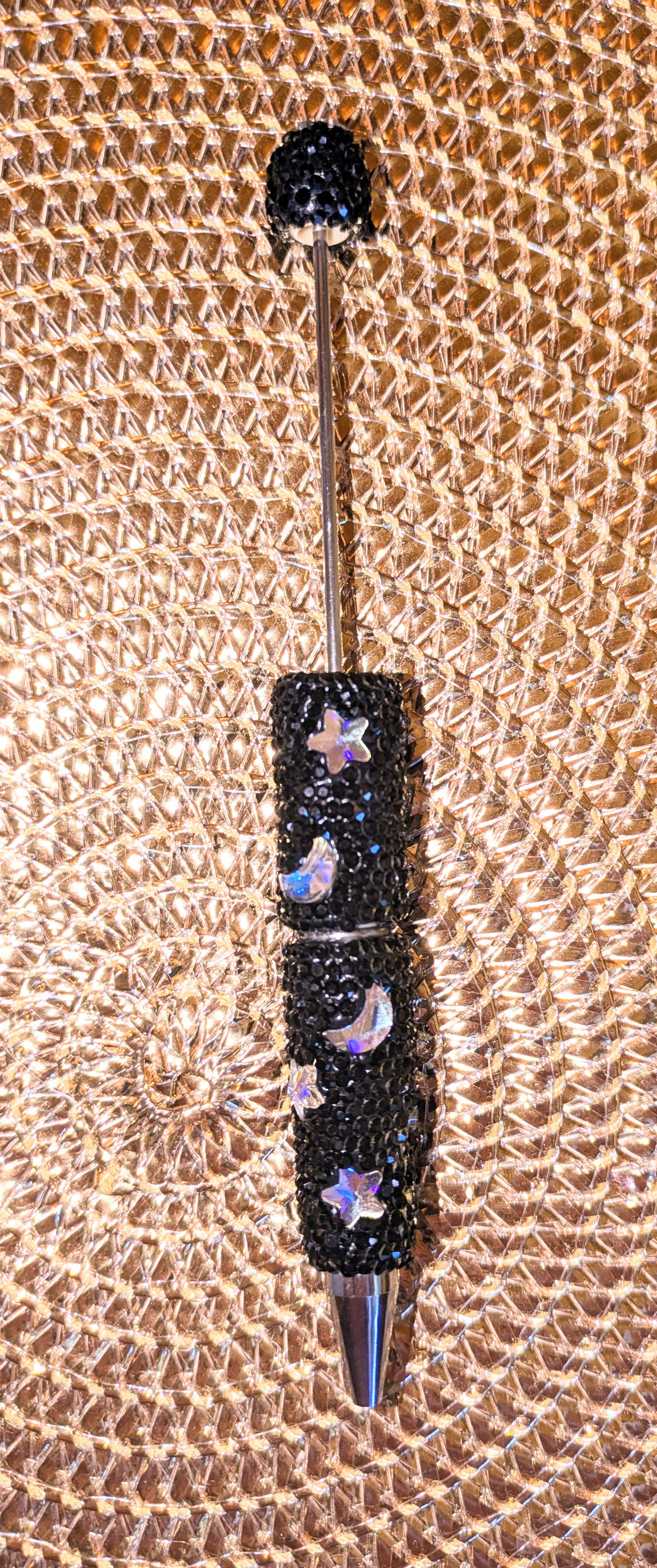 Handgestaltete Strasskugelschreiber mit Monden und Sterne schwarz