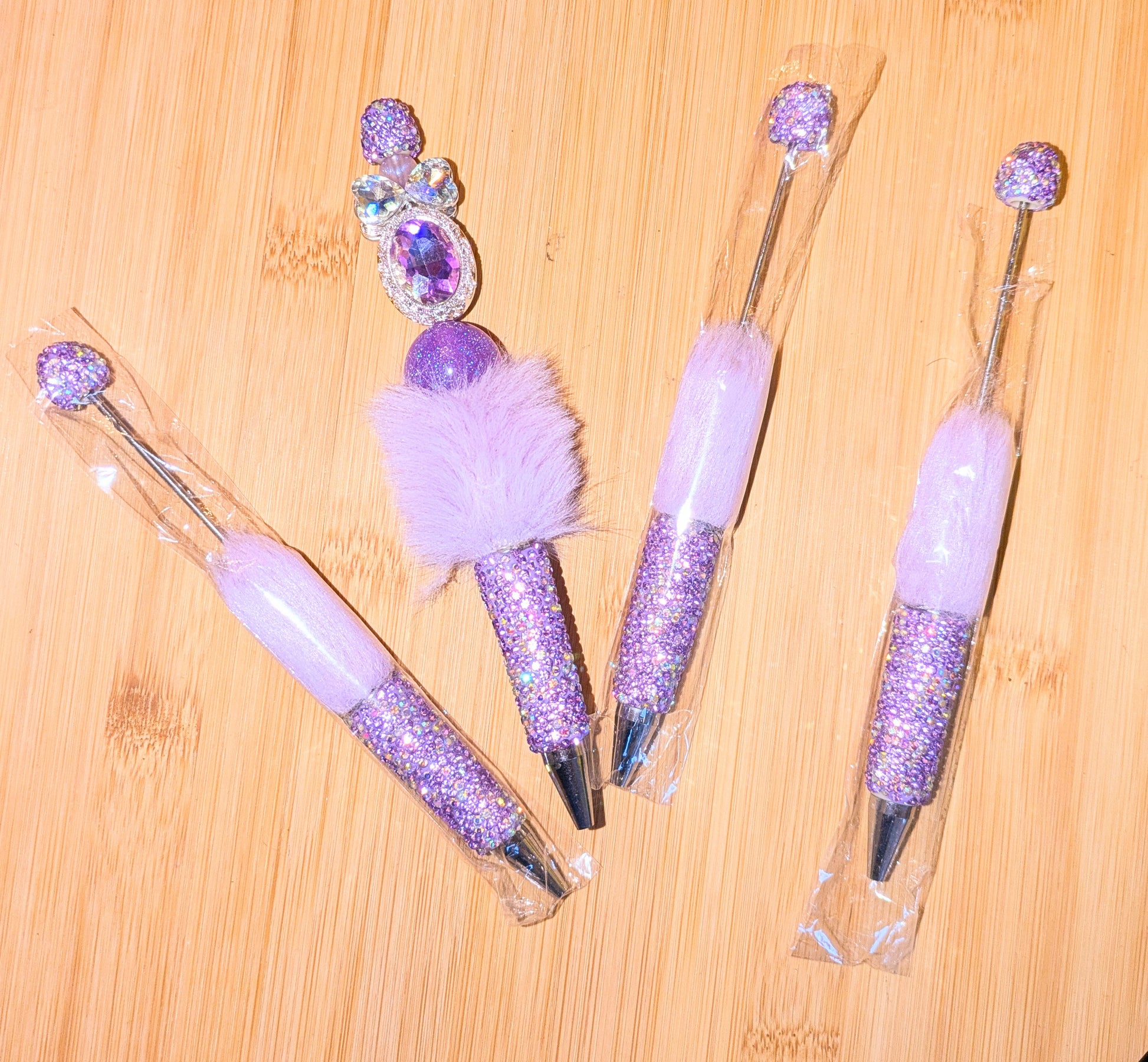 Handgestaltete Strasskugelschreiber mit Pompom lila silber