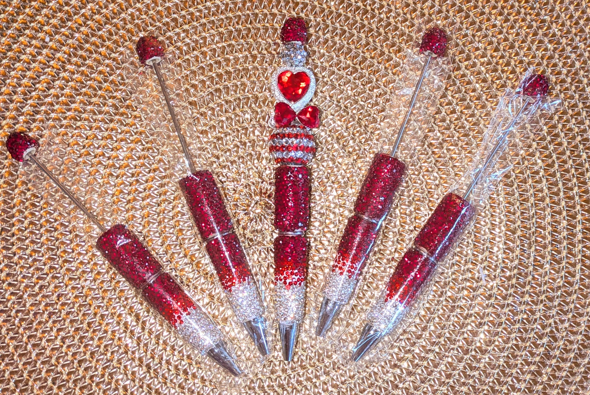 Handgestaltete Strasskugelschreiber Ombre rot silber