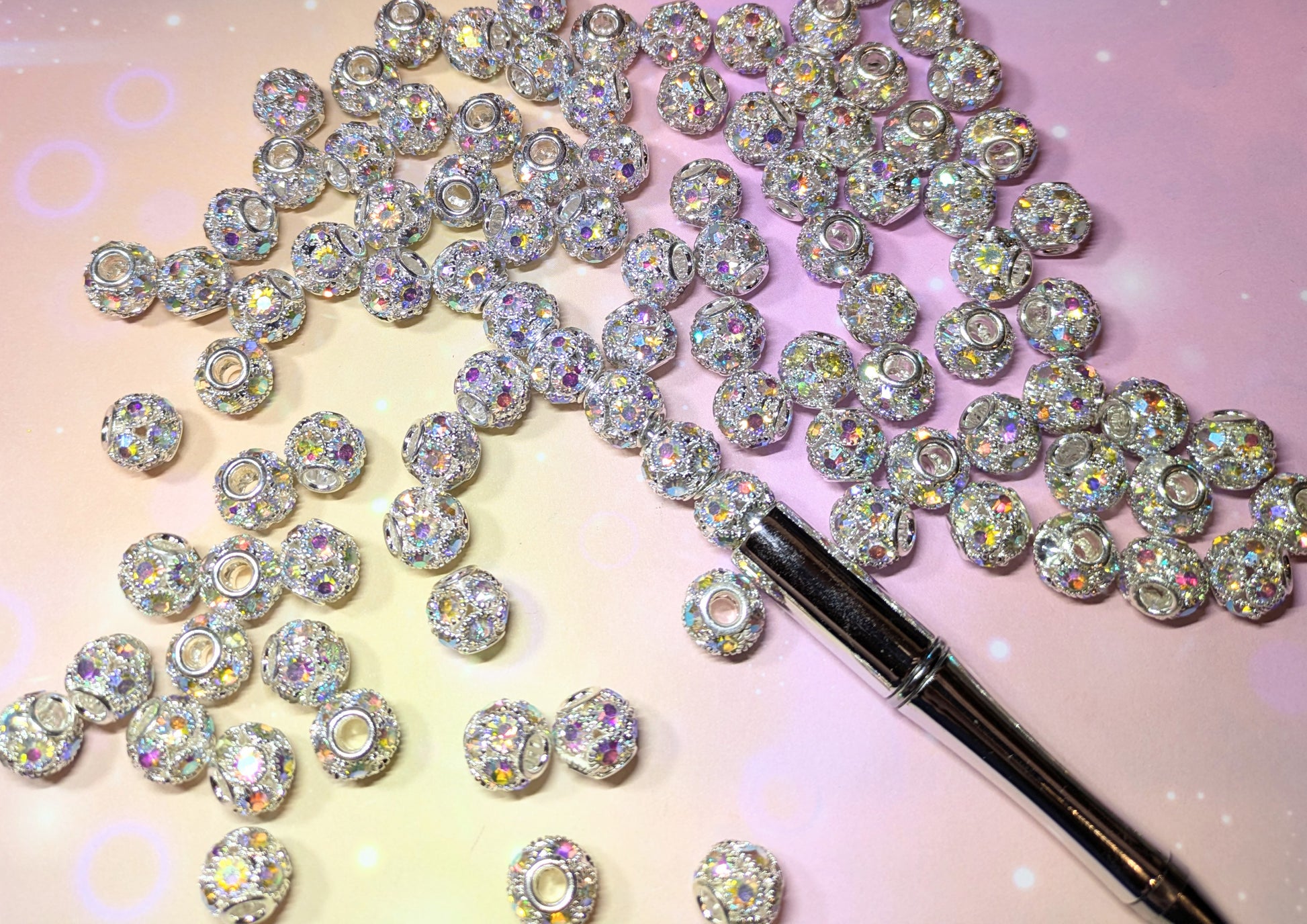 S98 Hochwertige 12 mm Metallperlen mit AB großen Strasssteinen UV