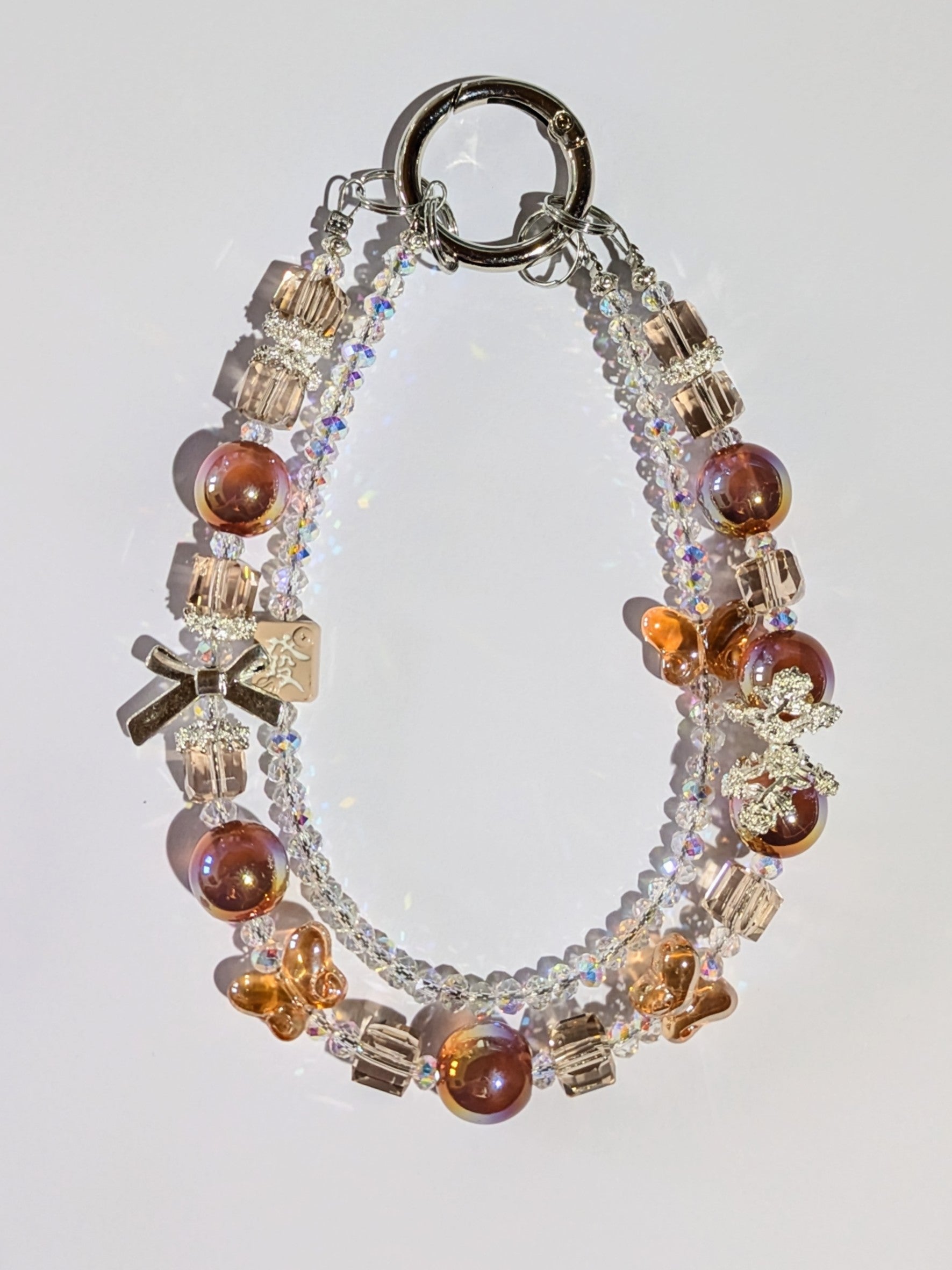 Hochwertige Handykette aus Glas- und Metallperlen in Kaffeebraun mit Schmetterlingen und Rosenverziehrungen