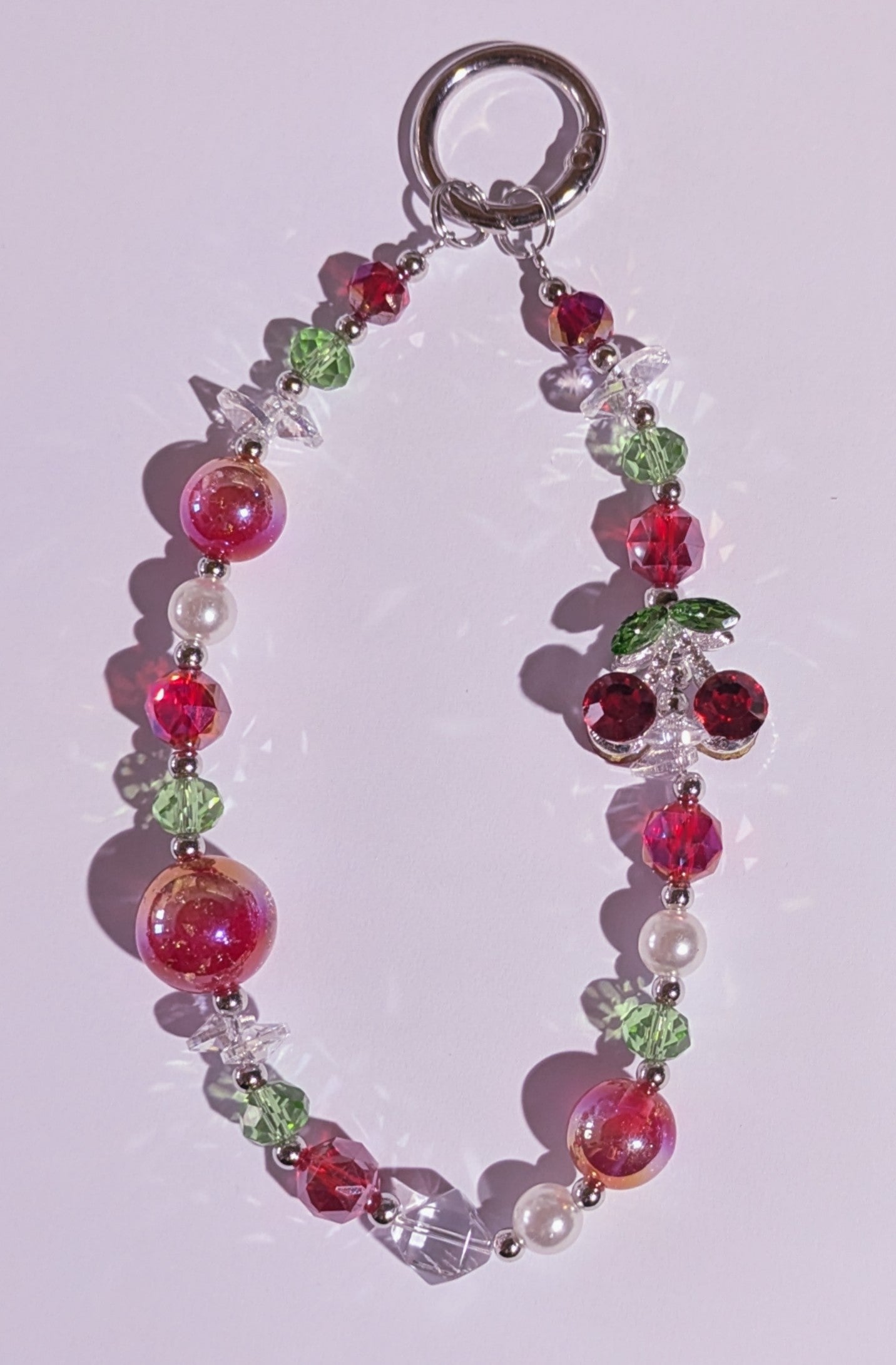 Hochwertige Handykette aus Glas- und Metallperlen in Rot mit Metallkirschperle