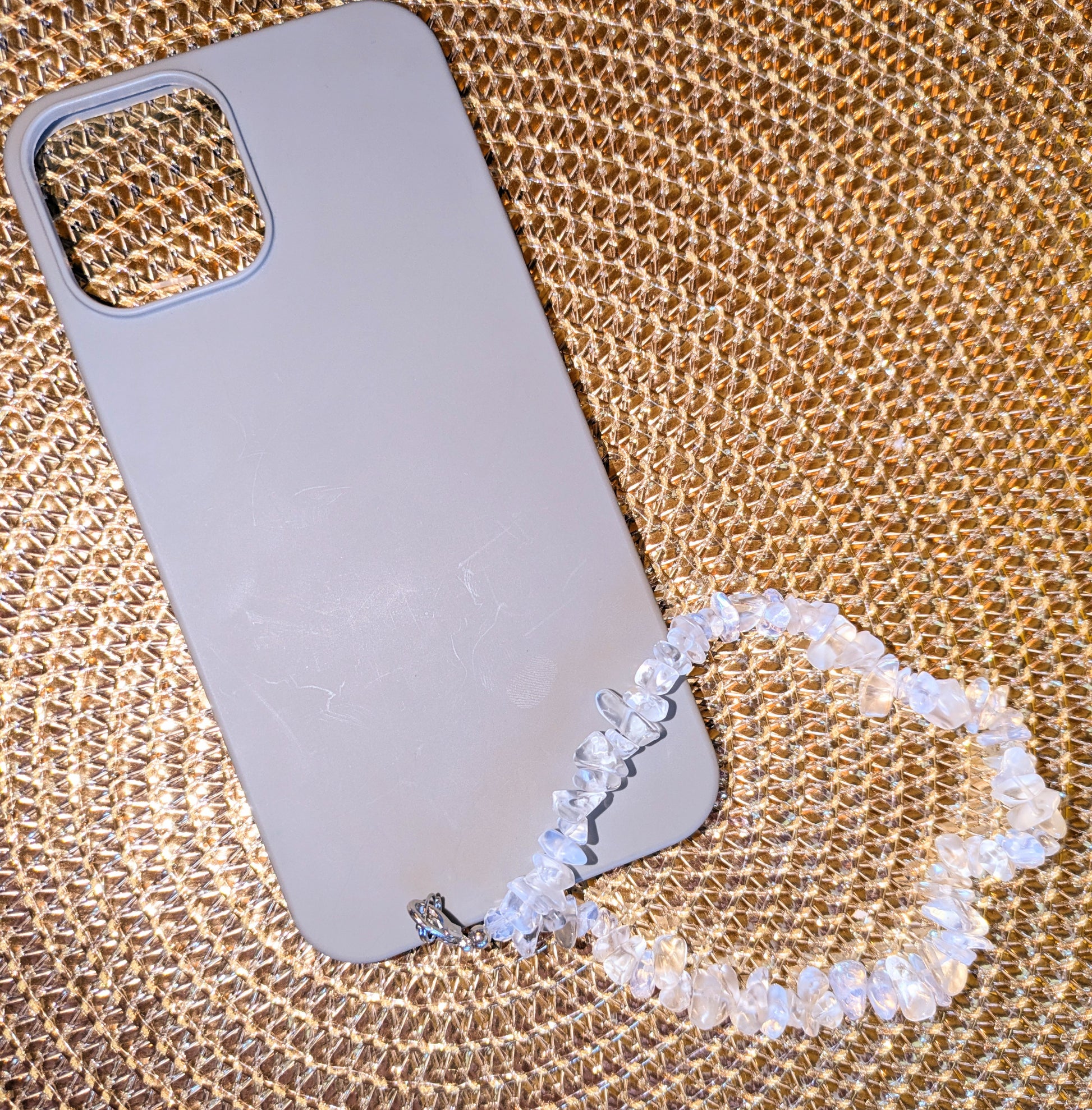 Naturstein Handykette mit Getrommelten Natursteinsplittern Bergkristall