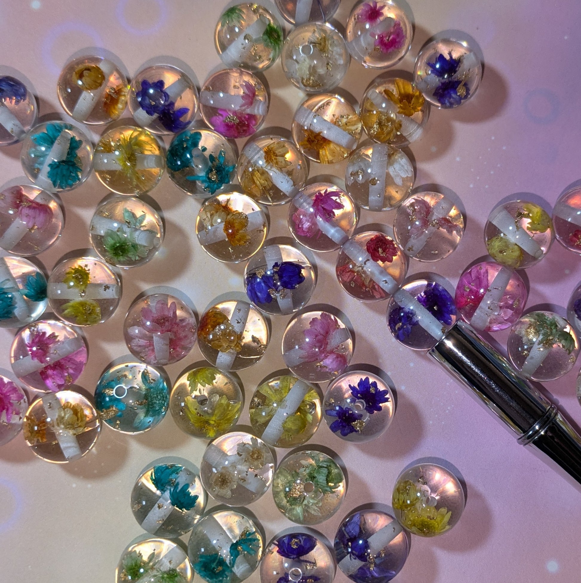 KK57 Resinperlen mit Trockenblumen und Goldflackes