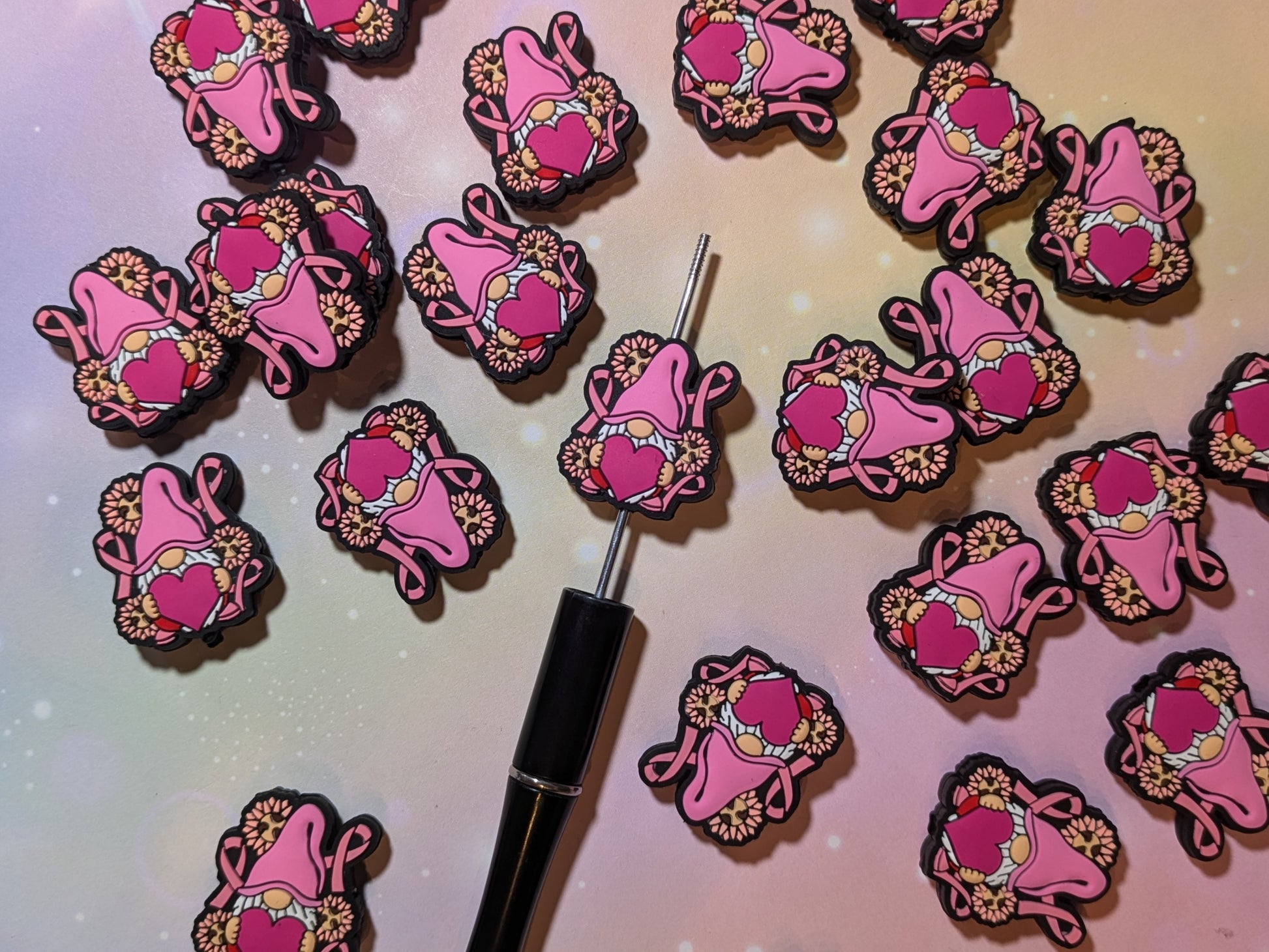 S65 Silikonperlen / Focals Zwerg mit Herz pink Gnom mit Herz