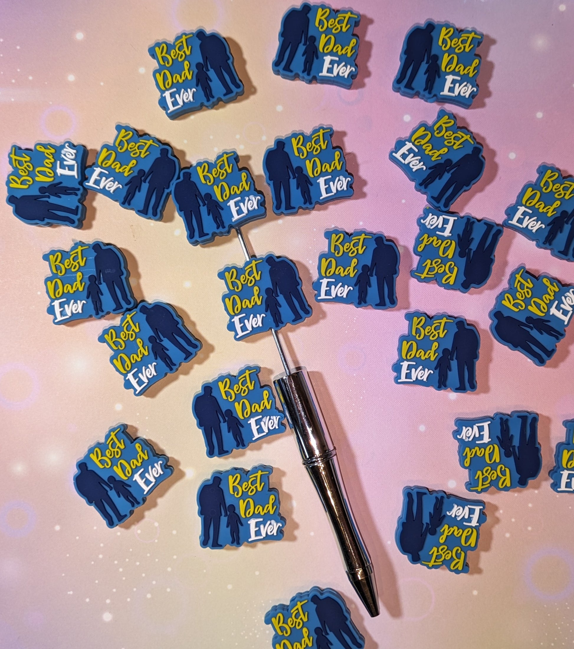 S56 Silikonperle / Focal " Best Dad Ever " blau Papa Kind Silouette