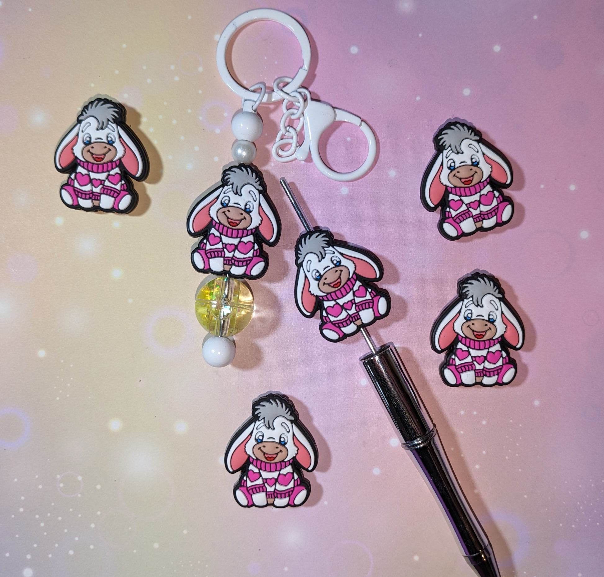 S41 Silikonperle / Focal Esel mit Herzchen Pullover weiß pink rosa