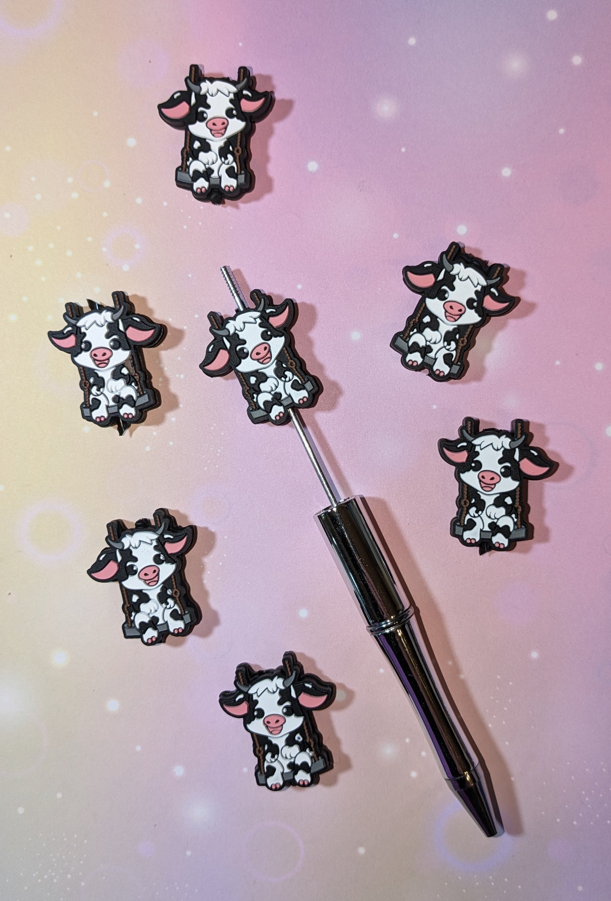 S56 Silikonperle / Focal Kuh auf Schaukel Babykuh Kälbchen