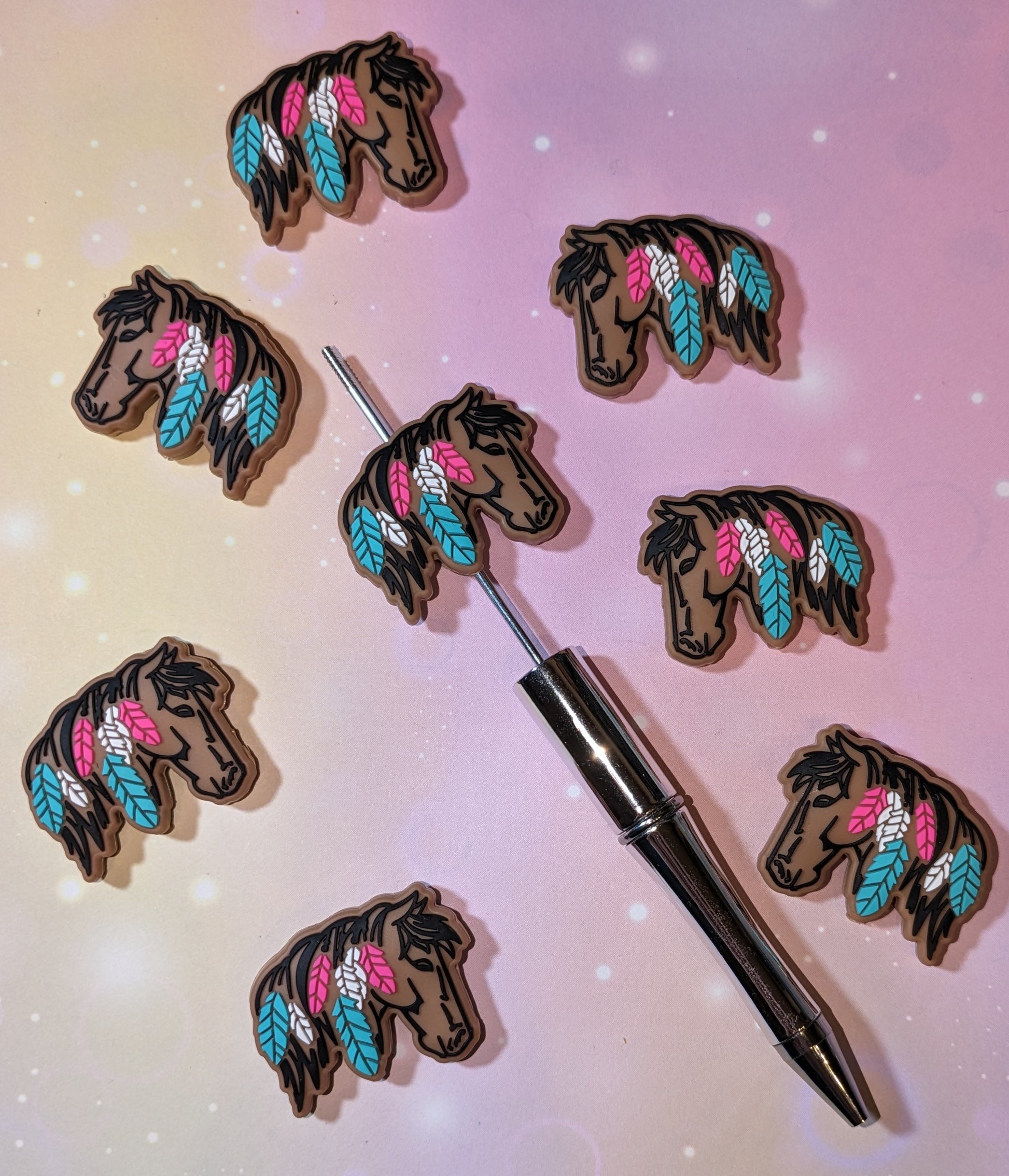 S61 Silikonperle / Focal Pferd mit Federn Indianer Pferd