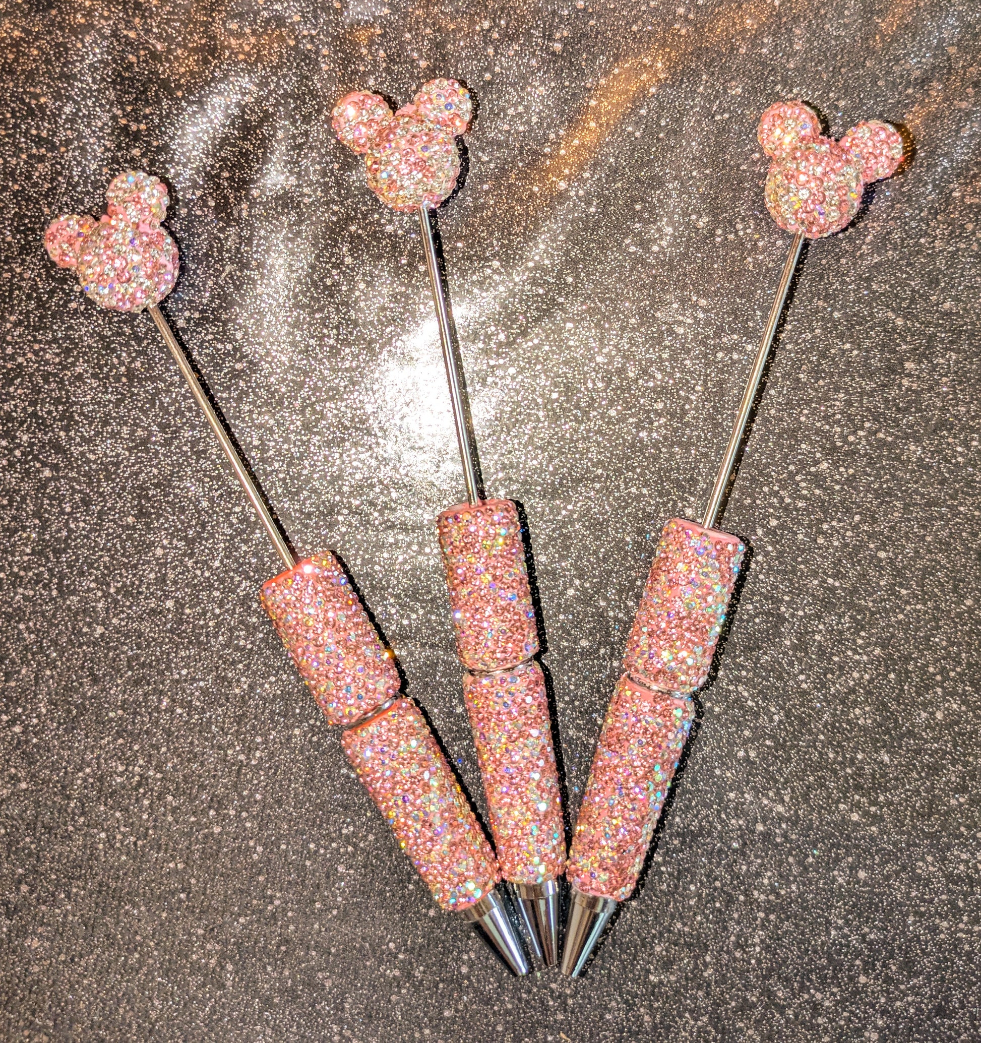 Strasskugelschreiber mit Mauskopf Rosa silber