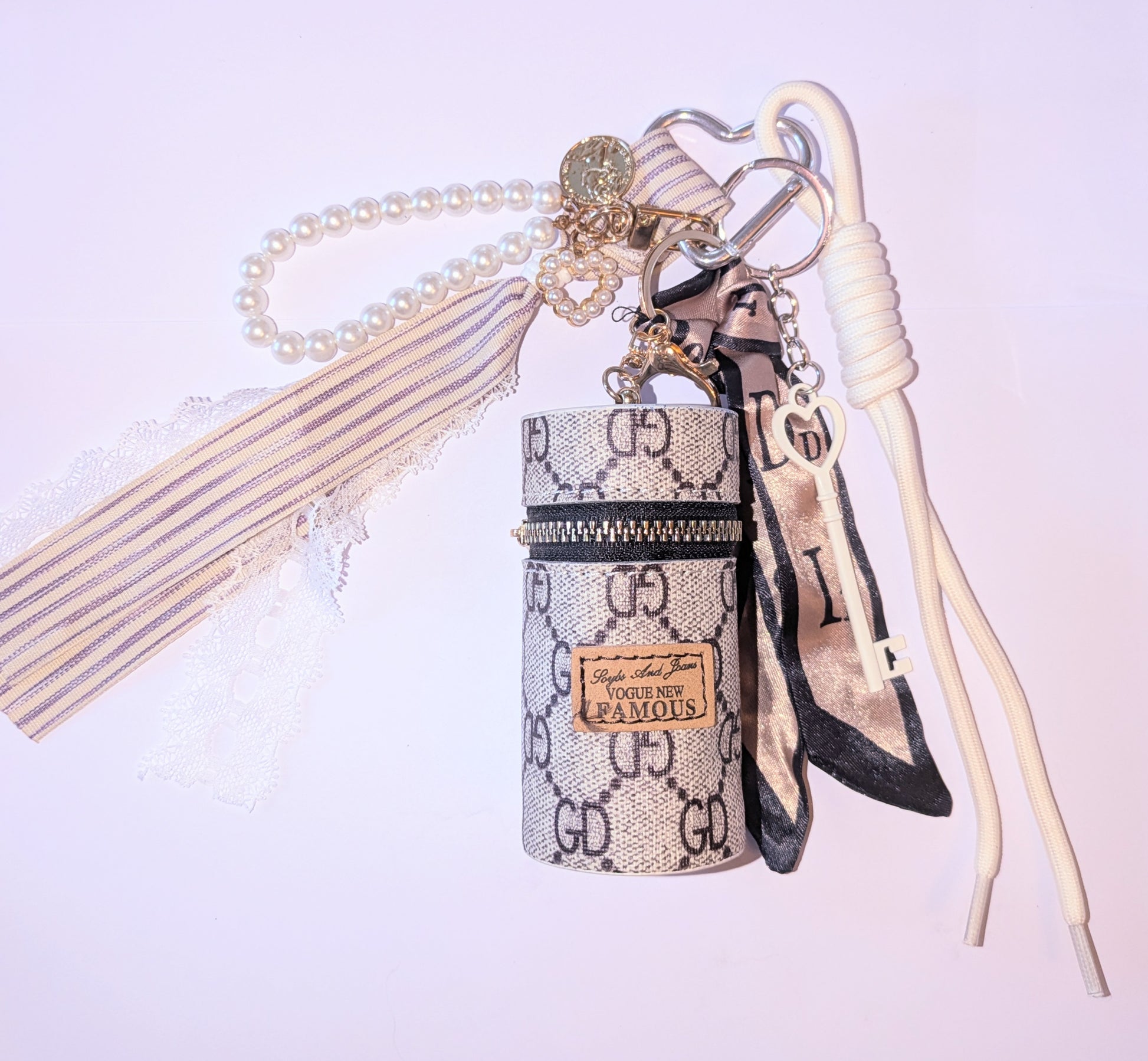 Taschenbaumler mit großer hellgrauer Runden Tasche und vielen weiteren Details