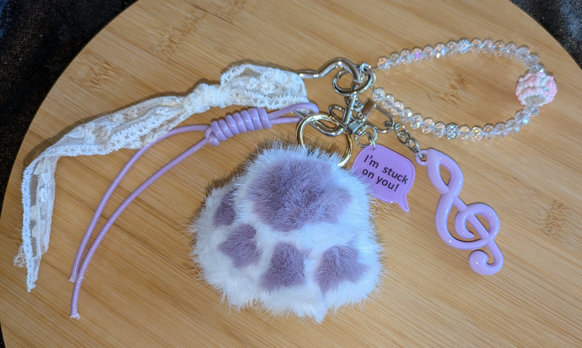 Taschenbaumler mit Lila Plüschtatze Tatze