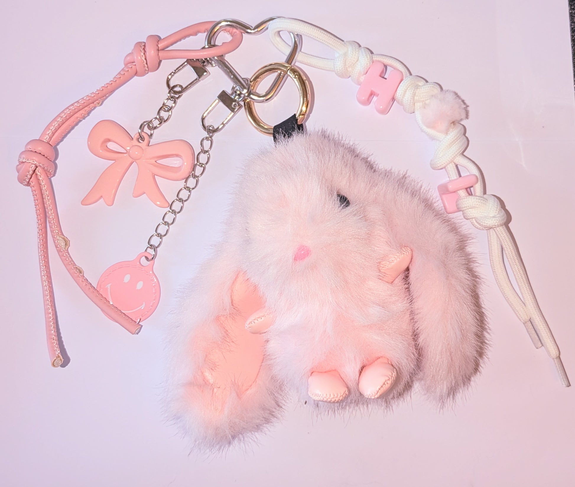 Taschenbaumler mit rosa Plüschkaninchen schleifen und vielen weiteren Details